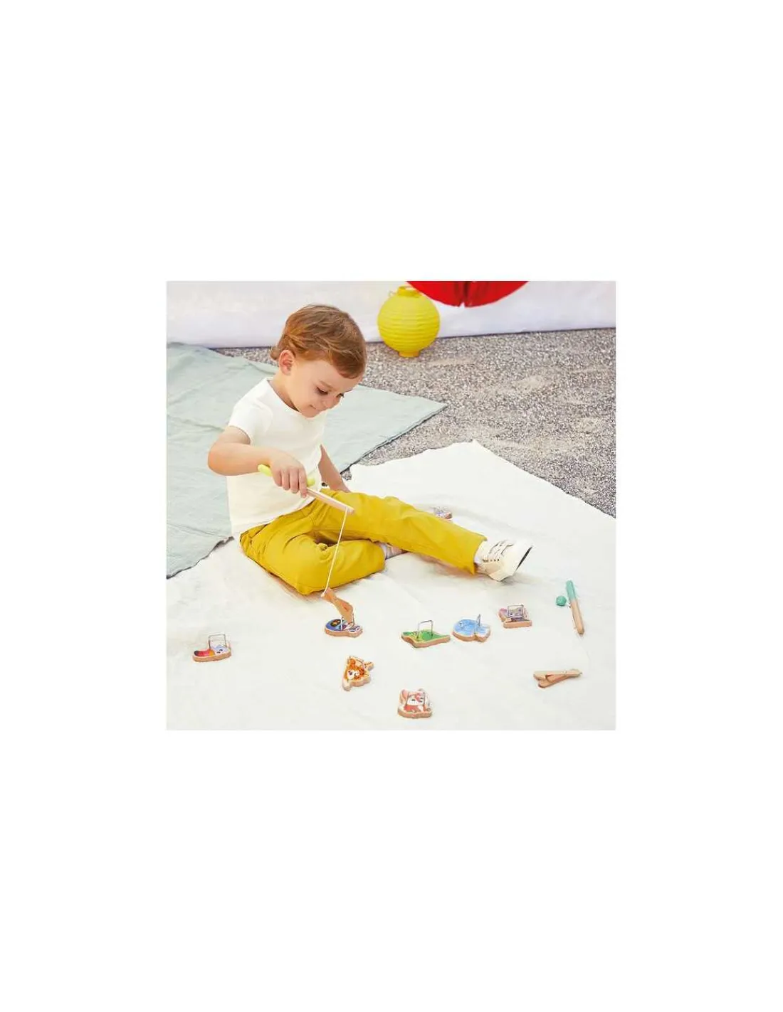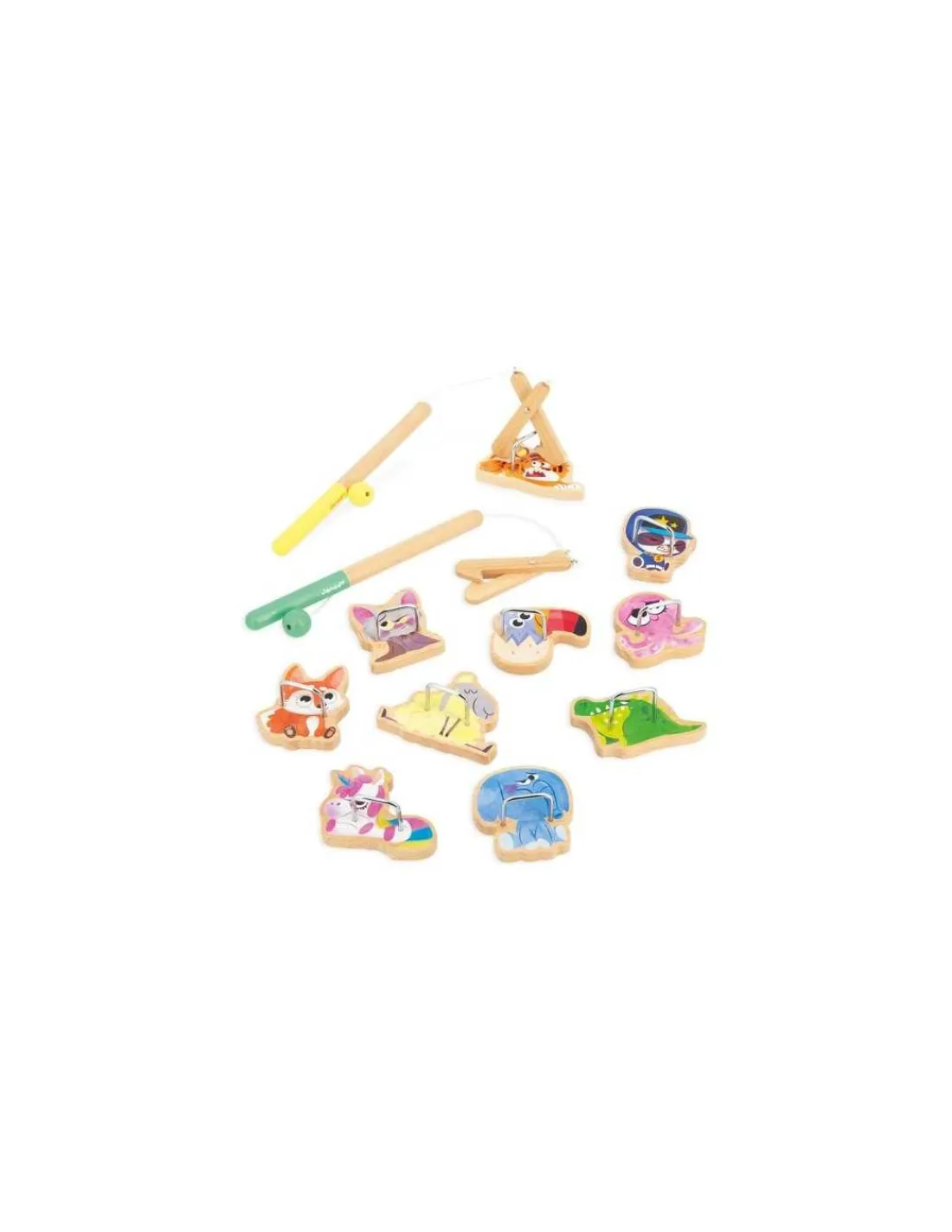 Cette pêche à la ligne revisitée sur le thème de la fête foraine est composée de 2 pinces, de 10 animaux farfelus à attraper et d’un sac en coton pour ranger le matériel lorsque le jeu est terminé.