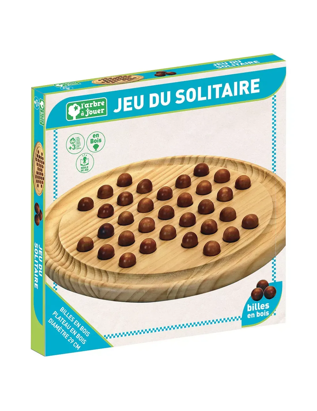 Découvrez le jeu de solitaire en bois de la collection l’arbre à jouer de JeuJura, un jeu en bois pour jouer seul, un jeu de stratégie amusant qui défie à chaque fois à une nouvelle partie. Les billes en bois doivent sauter pour qu’à la fin, il n’en reste plus qu’une.