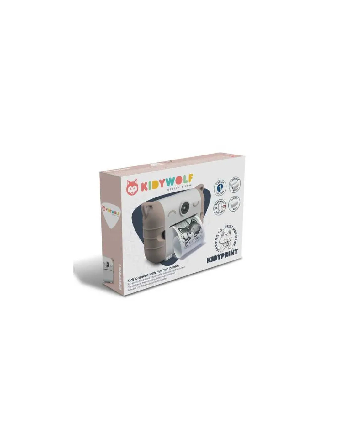 Découvrez l’appareil photo avec imprimante Kidyprint peach de Kidywolf, un appareil photo instantané avec son imprimante intégrée. Cet appareil offre aux enfants la chance de saisir leurs précieux instants et de les imprimer instantanément, le tout sans utiliser la moindre goutte d’encre, grâce à son papier thermique novateur.