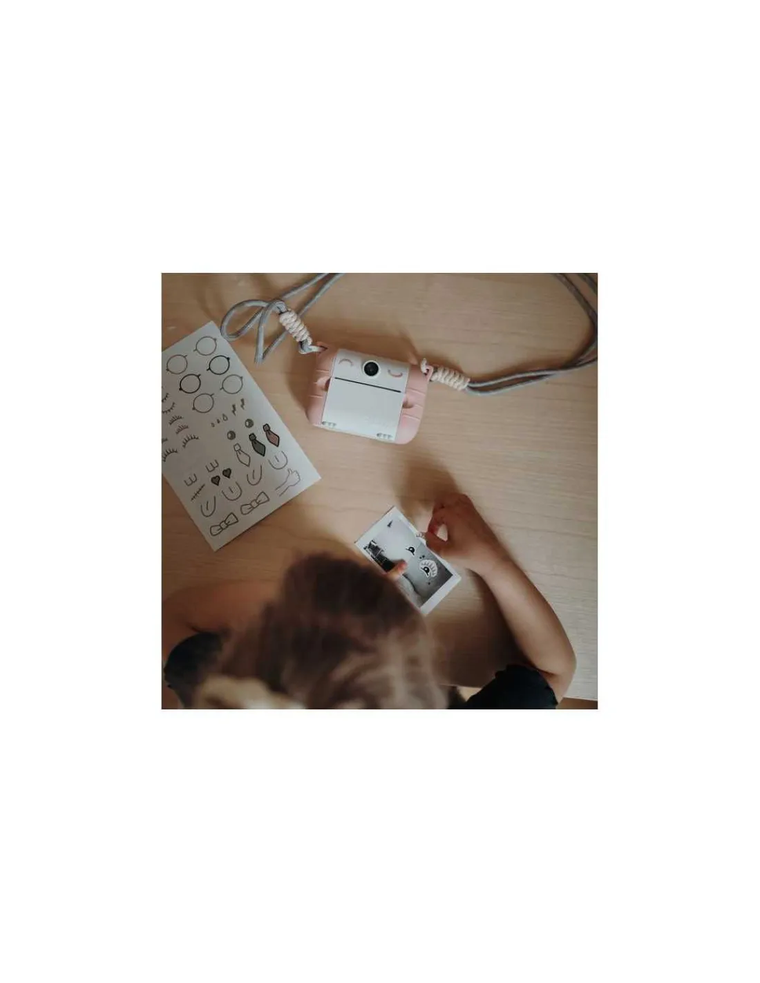 Cet appareil photo propose une impression thermique immediate en noir et blanc avec une camera de 8Mpx et un écran de 2.4’. Il comprend 21 effets filtres pour ajouter une touche fun aux photos, 2 rouleaux de papier thermique, 1 rouleaux de papier thermique autocollant, 3 petits cadres photo aimantés pour fixer les impressions, des autocollants pour personnalisation de l’appareil, une dragonne, une batterie rechargeable via cable USB-C et l’espace prévu pour carte SD.