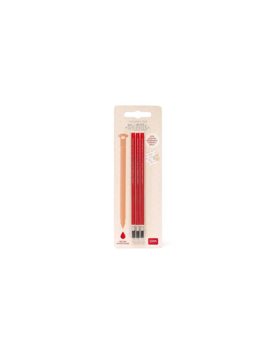 Découvrez les recharges pour stylo à encre gel effaçable Rouge de Legami, un lot de 3 recharges permettant de prolonger la durée de vie de vos stylos Legami, tout en vous assurant des corrections faciles grâce à leur encre effaçable.