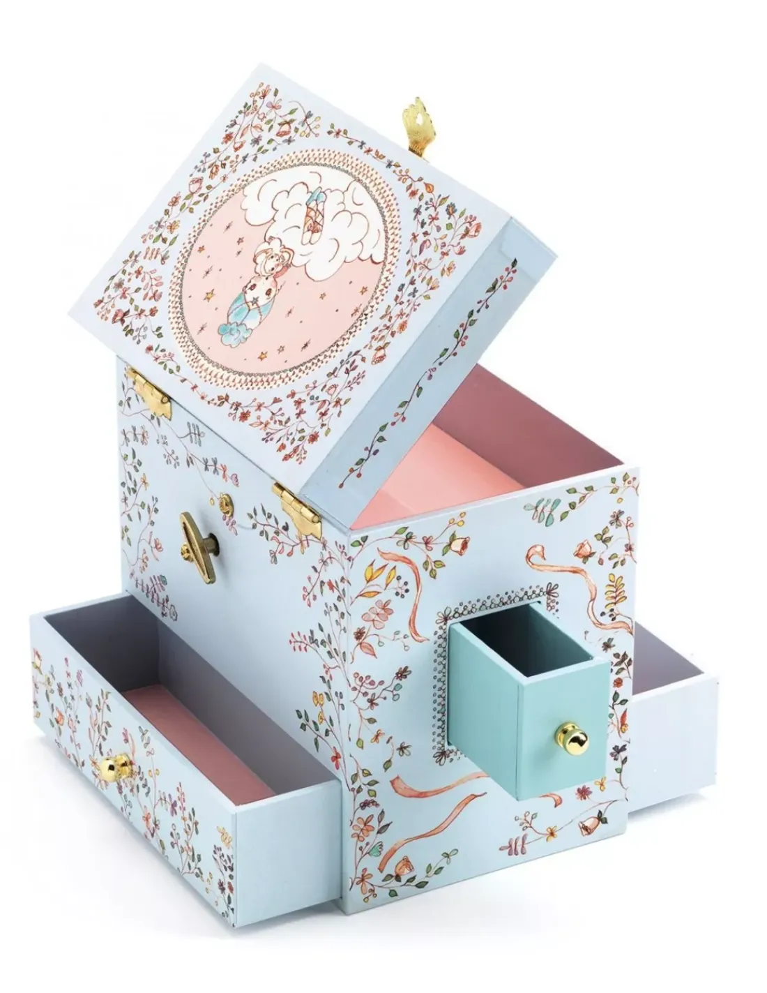 Découvrez la boite à musique « Ballerine en scène » de Djeco, une jolie boite à bijoux musicale qui plaira beaucoup aux jeunes enfants grâce à ses compartiments secrets et sa la mélodie « Romance de l’amour ».