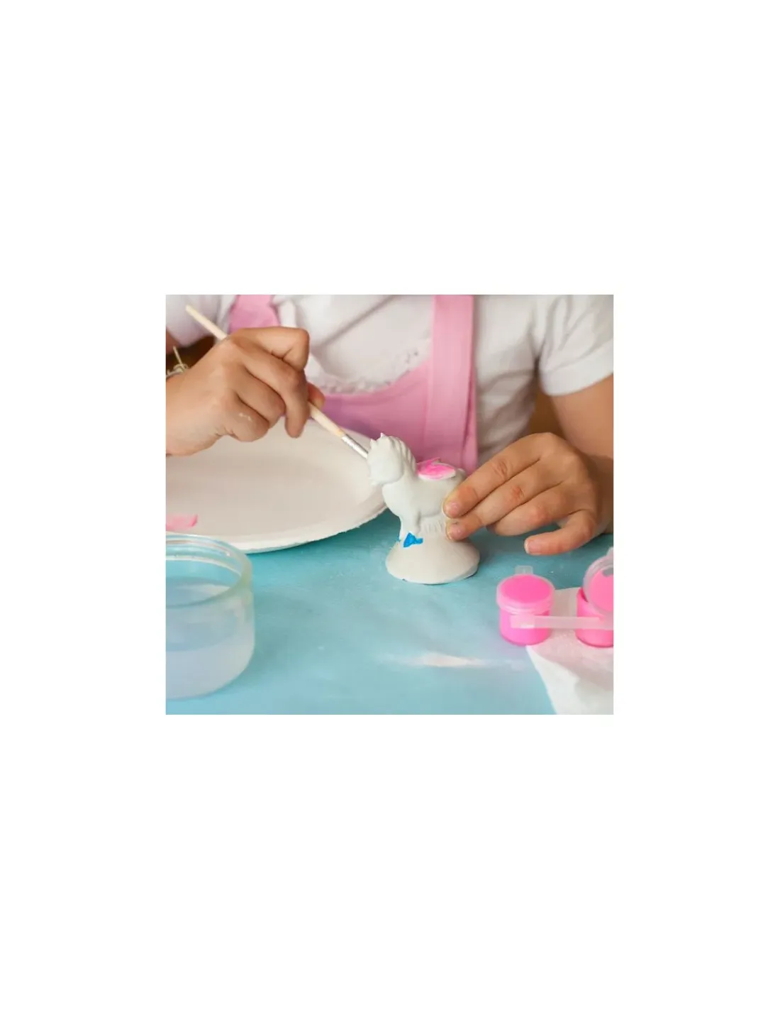 Le coffret créatif contient 5 moules en latex, 1 sachet zippé refermable de 800g de plâtre, 6 pots de peinture 5ml : jaune, rouge, blanc nacré, bleu pailleté, violet nacré et rose, 4 croisillons, 1 pinceau, 1 cuillère doseuse, 1 planche de 4 paires d’ailes scintillantes et une notice d’utilisation.