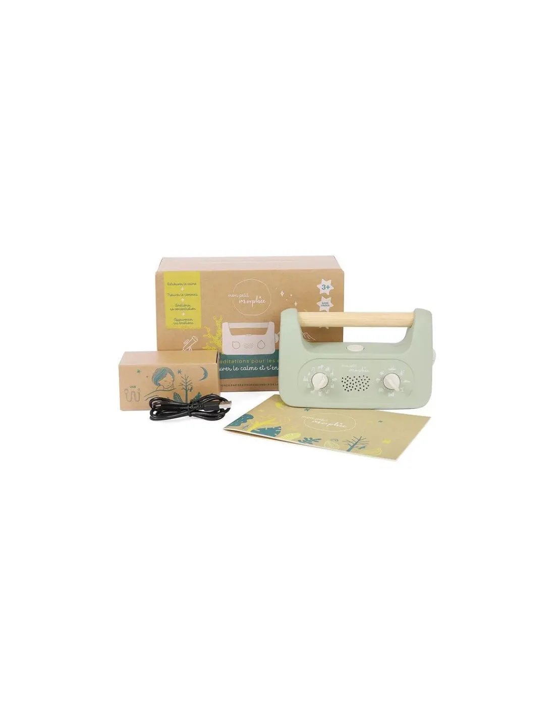 Créé en collaboration avec des professionnels du sommeil, Mon Petit Morphée est un objet nomade sans onde et sans écran, qui offre des séances de méditation et de sophrologie. 192 histoires méditatives, musiques douces et sons de la nature à écouter pour retrouver le calme en journée et pour s’endormir rapidement et facilement le soir.