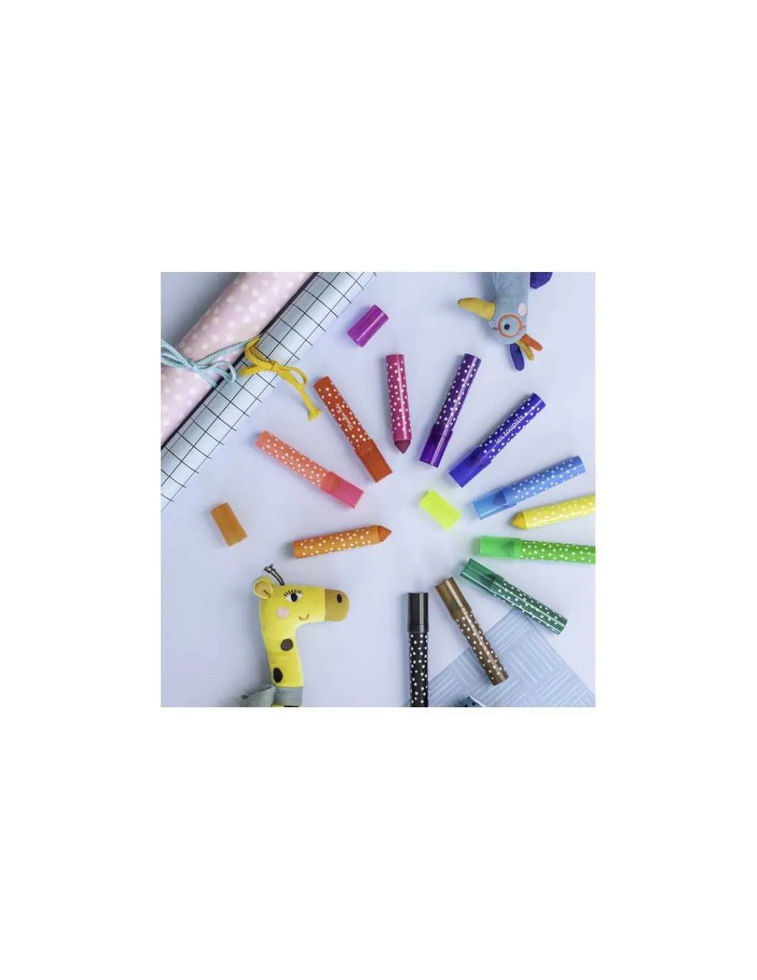 12 gros feutres de couleur avec une pointe conique pour un trait parfait quelle que soit l’inclinaison et qui ne s’enfonce pas! Lavables à l’eau, ils seront vite adoptés par les tout-petits pour développer leur créativité et leur imaginaire.