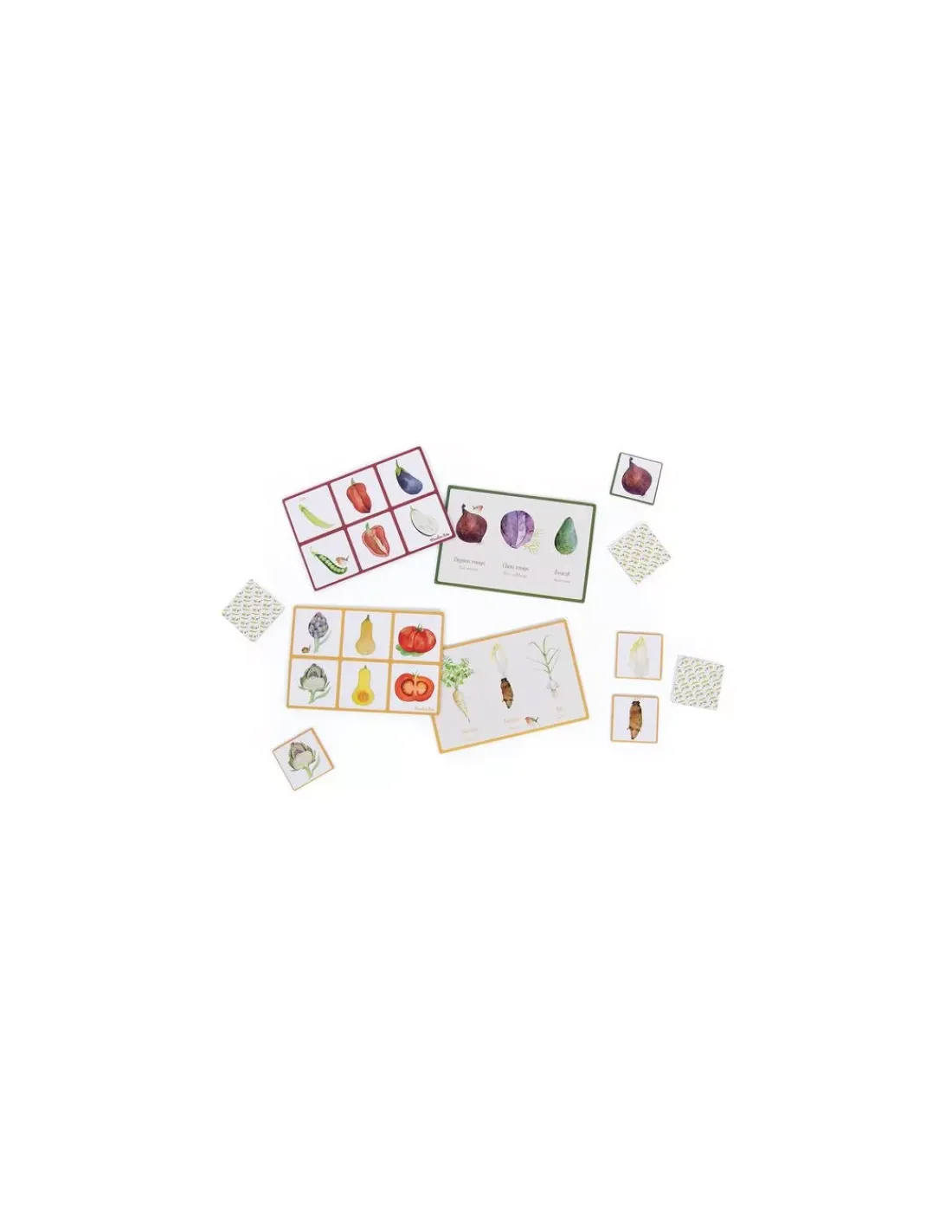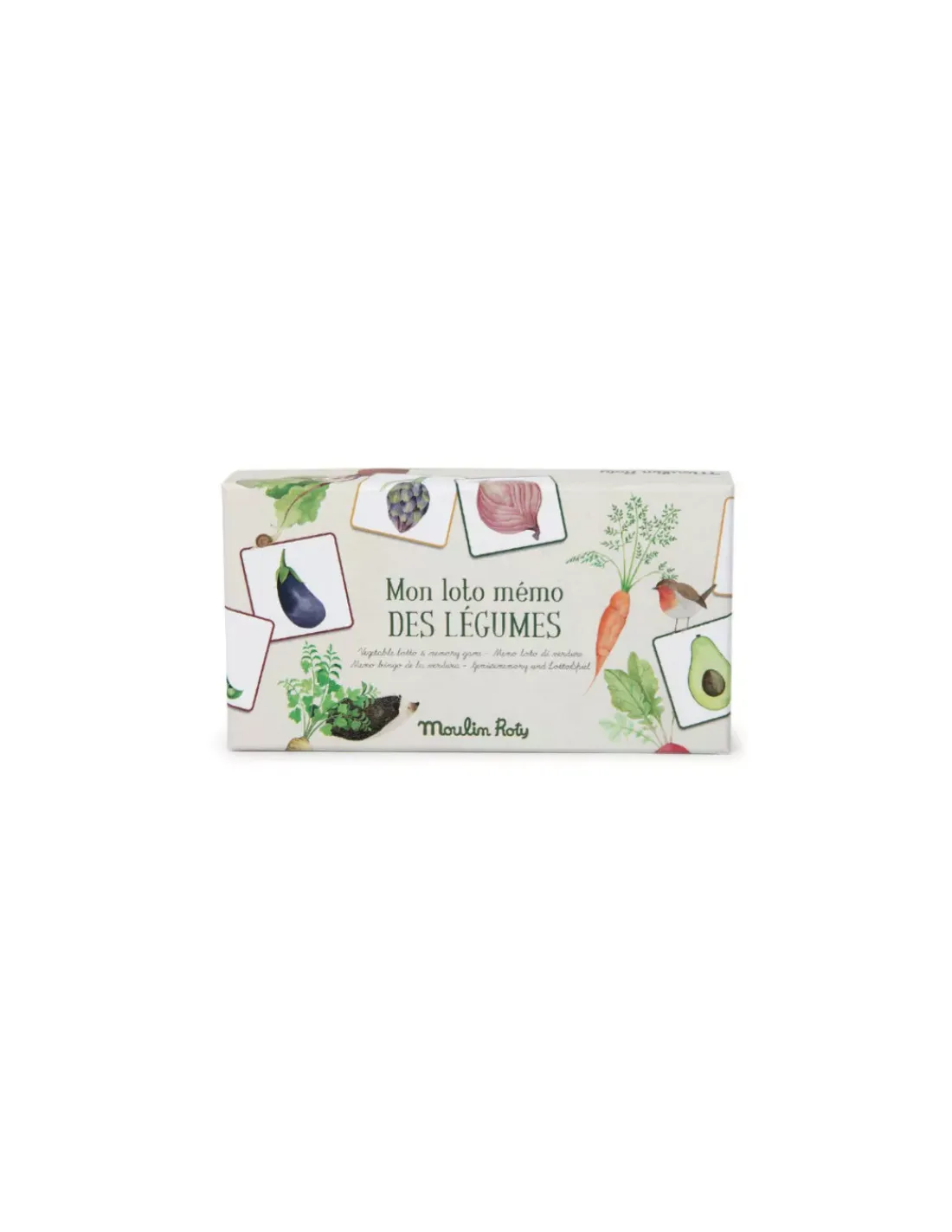 Découvrez le loto mémo des légumes de la collection Le jardin du moulin de Moulin Roty, un jeu éducatif à partir de 3 ans aux jolies illustrations. Un jeu 2 en 1 pour apprendre et jouer avec les légumes dessus ou dessous, entier ou découpés.