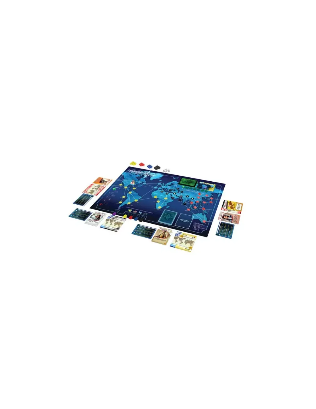 Ce jeu contient 1 plateau de jeu représentant le monde, 7 cartes Rôle avec pion correspondant, 6 stations de recherche, 6 marqueurs en bois, 96 cubes de maladie, 48 cartes de Propagation, 59 cartes Joueur, un aide mémoire et la règle du jeu.