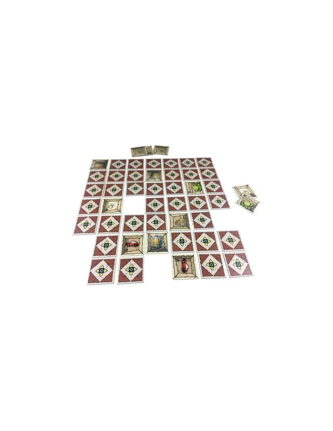 Le jeu contient 49 tuiles (26 trésors, 8 diamants, 12 dragons, 3 araignées)et une règle du jeu.