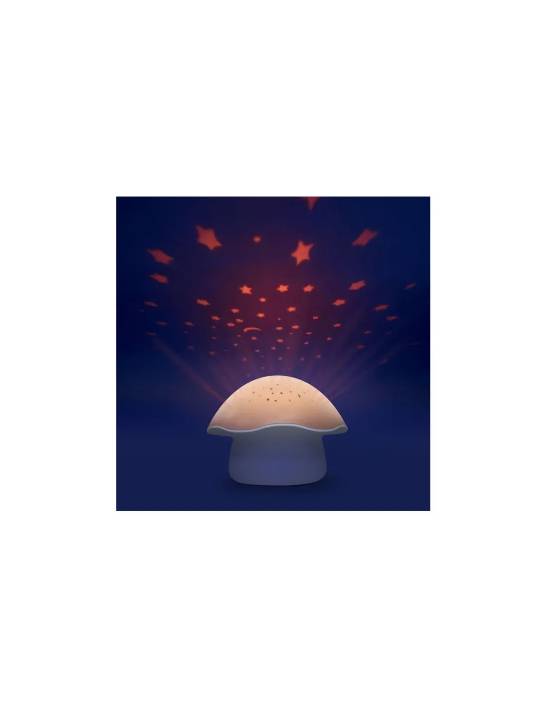 Le projecteur d’étoiles crée une jolie voûte étoilée au plafond pour aider les tout-petits à s’endormir. Les étoiles changent doucement de couleurs, mais il est aussi possible de choisir sa couleur préférée et de la figer. Musical, ce champignon émet une douce berceuse ou des bruits blancs de battements de cœur pour que bébé puisse s’endormir encore plus facilement.