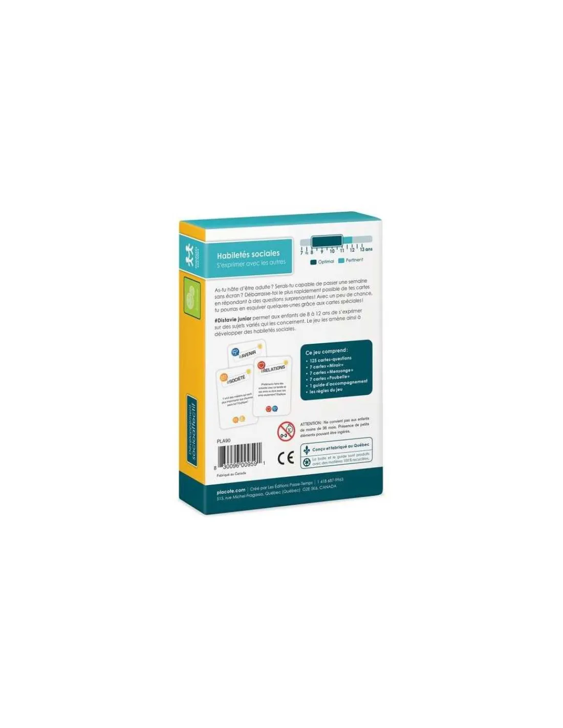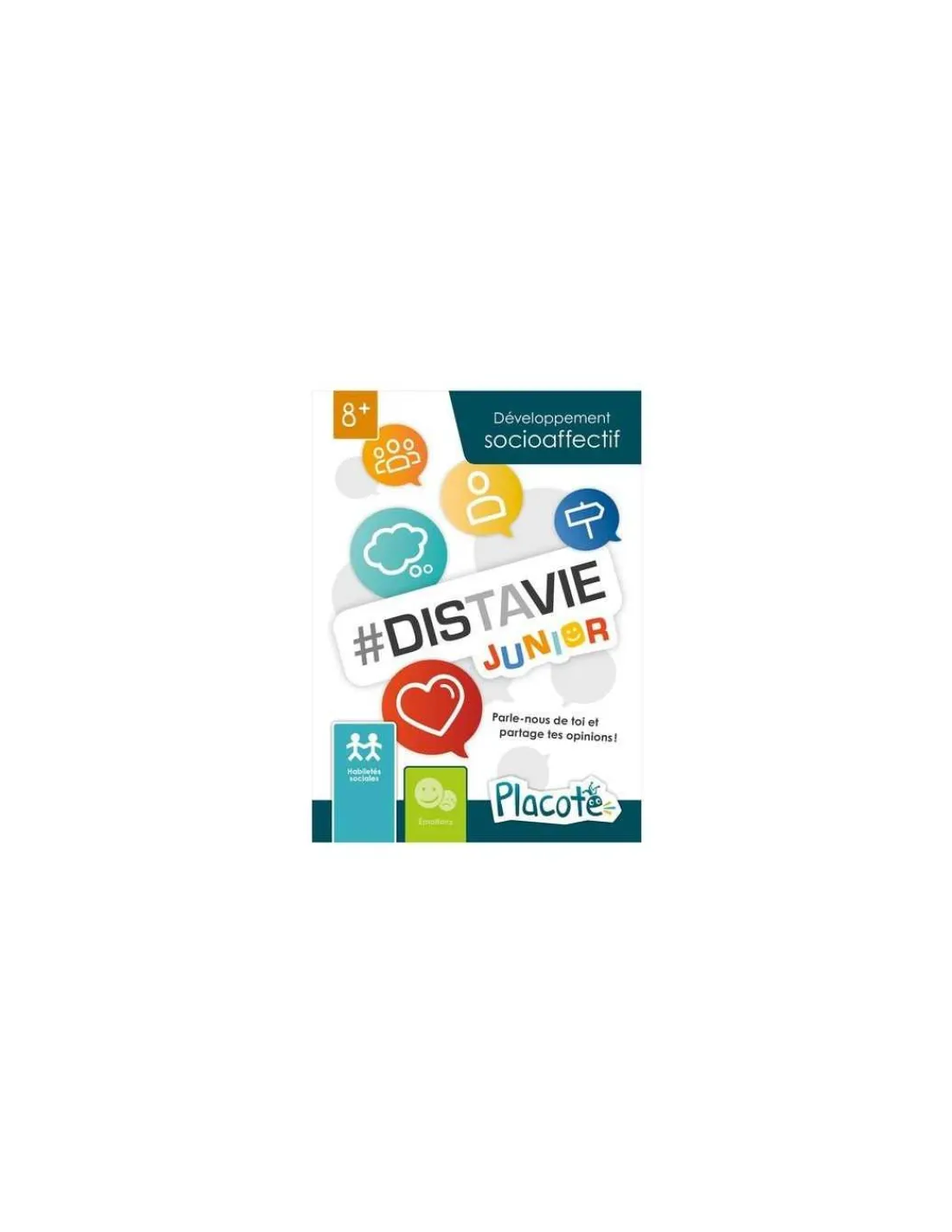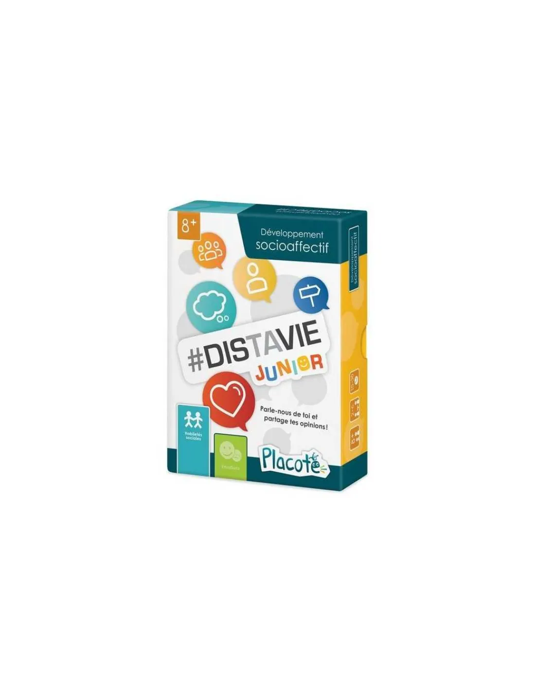 Découvrez le jeu Distavie Junior de Placote, un jeu de cartes qui permet aux enfants de 8 à 12 ans de s’exprimer sur des sujets variés qui les concernent. Le jeu les amène ainsi à développer des habiletés sociales.