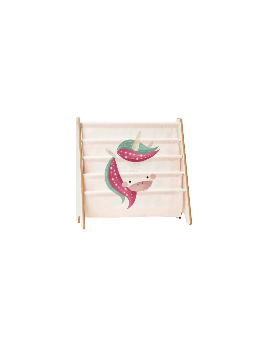 Découvrez la bibliothèque Sparkly la licorne de Sassi, une bibliothèque en tissu et en bois pour ranger les livres de votre enfant.