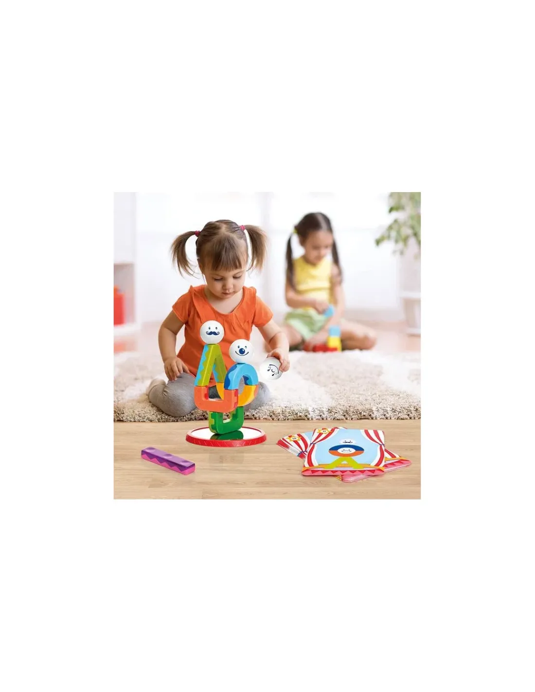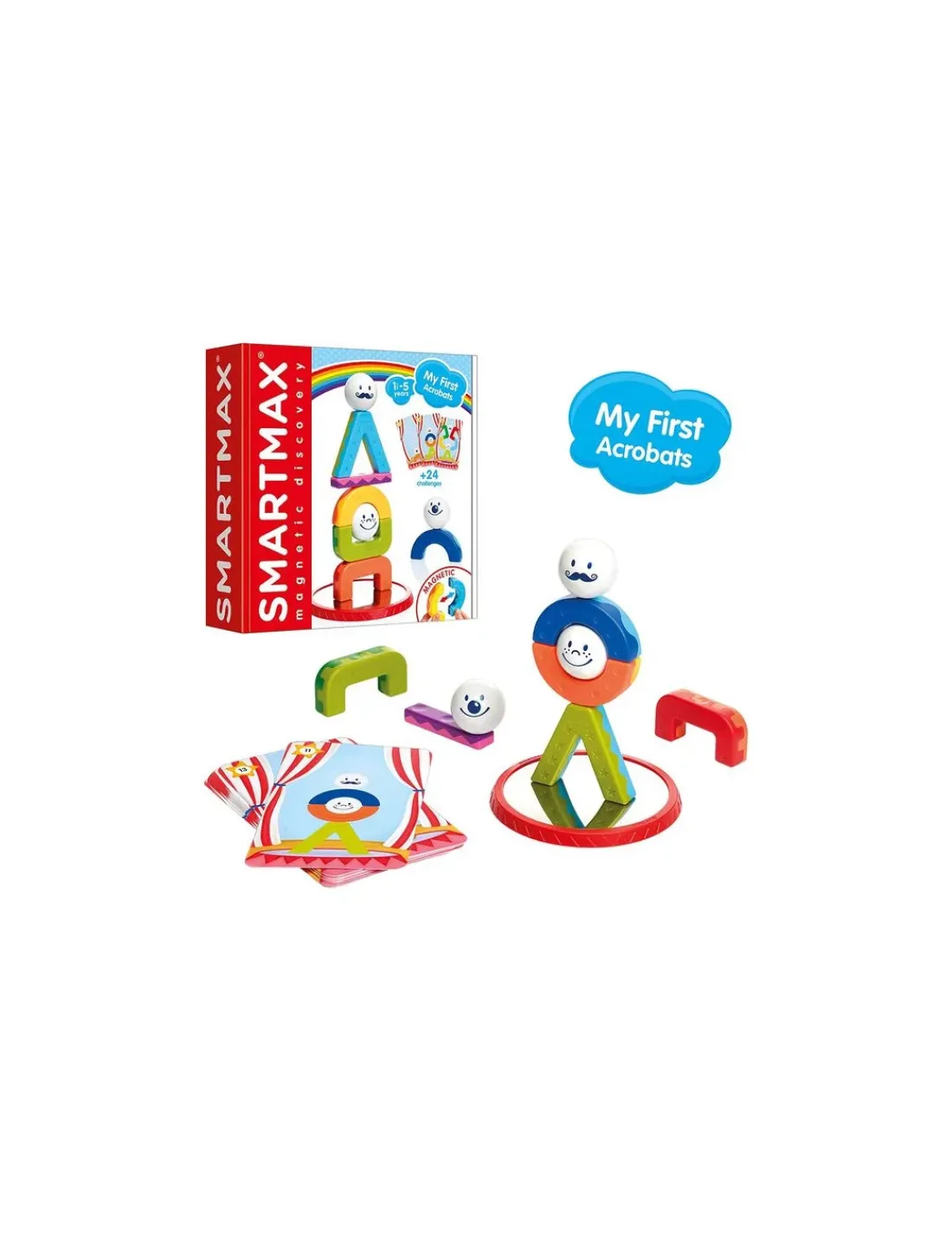 Découvrez Les acrobates du cirque de Smartmax, un coffret pour les enfants de 1 à 5 ans comprenant 10 pièces de constructions et 24 défis pour développer la dextérité des plus petits.