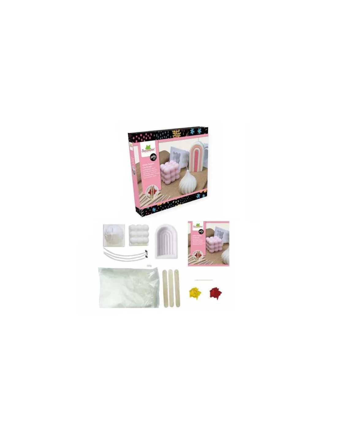 Découvrez le coffret 5 bougies cire de soja de Sycomore, un coffret créatif à partir de 10 ans pour réaliser de magnifiques bougies en cire de soja avec des moules en silicone.