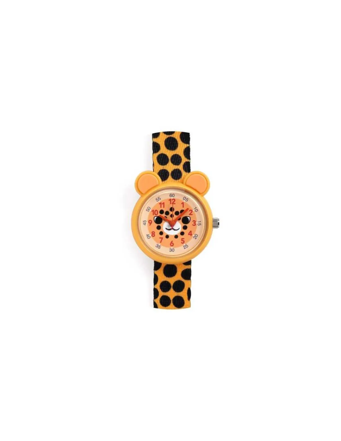 Découvrez la montre Guépard Ticlock de Djeco, une montre élégante et colorée pour apprendre à lire l’heure en s’amusant. Avec son bracelet tacheté, vous allez beaucoup apprécié son cadran représentant une tête de guépard avec ses oreilles en volume.