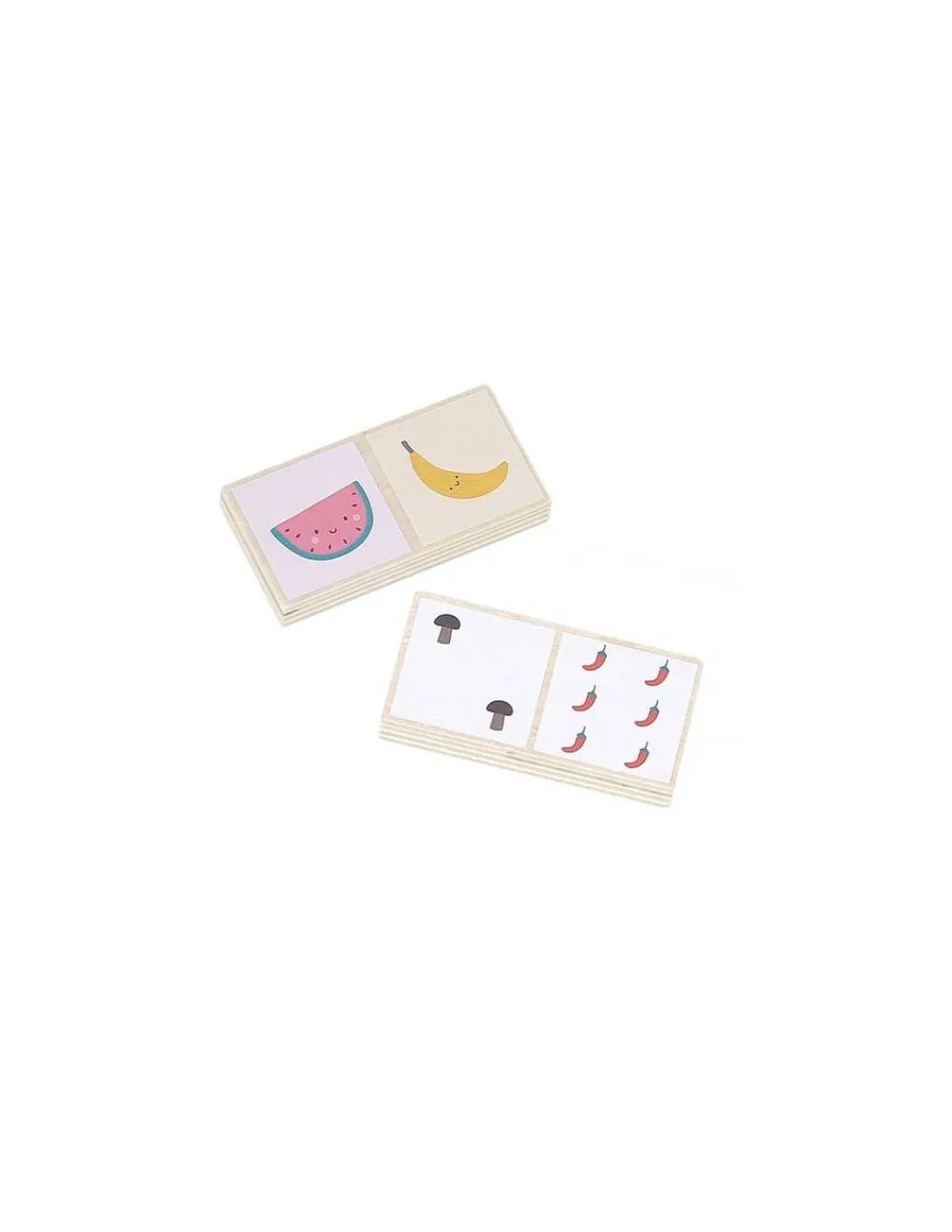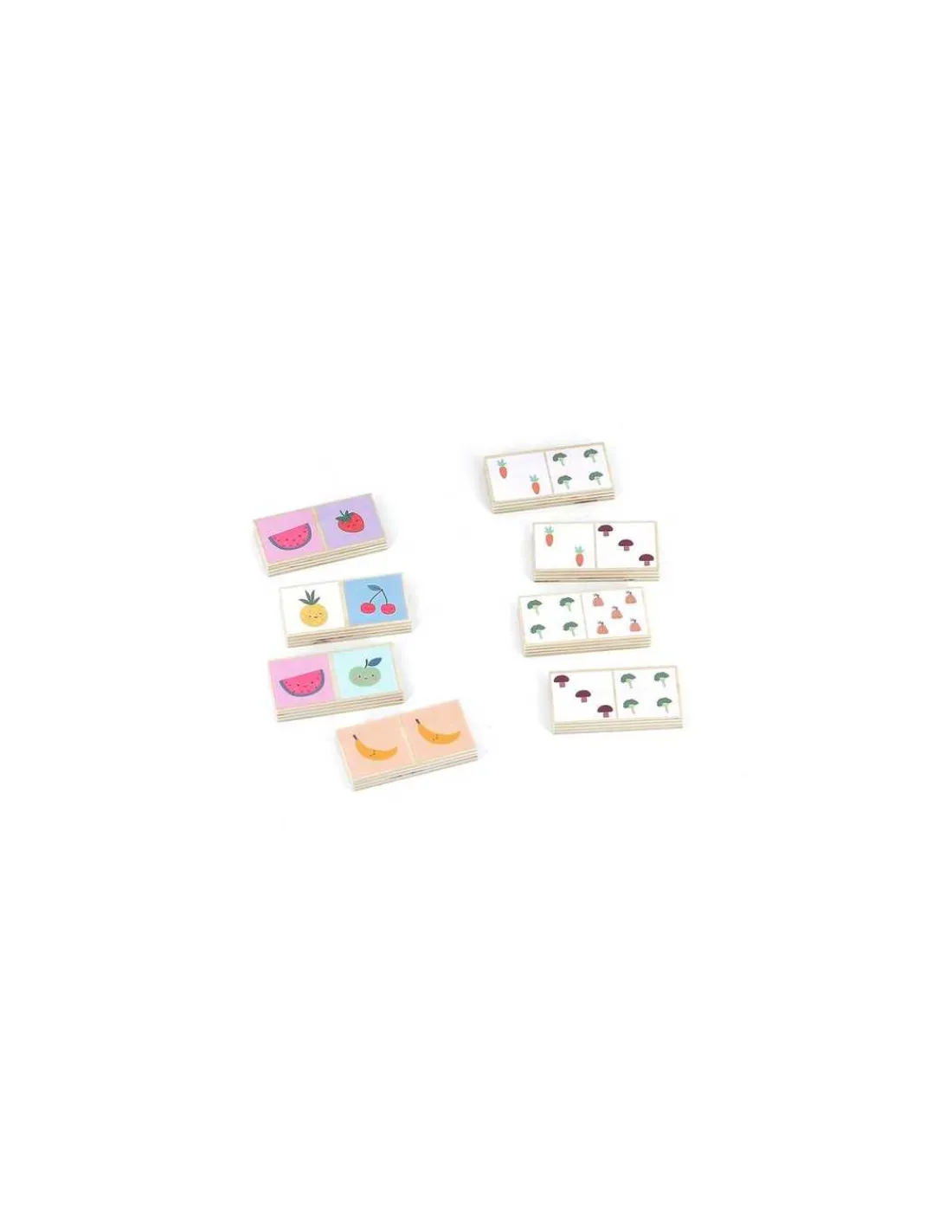 Avec leurs couleurs toutes douces, ils sont adaptés pour les enfants dès 2 ans. Des dominos réversibles avec une face pour associer les fruits et l’autre face pour associer les nombres (représentés par des légumes).