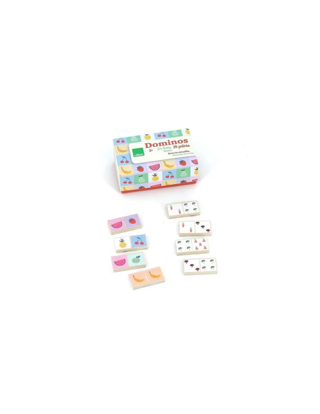 Découvrez le jeu de Dominos réversibles fruits légumes de Vilac illustré par Sarah Betz, un jeu éducatif en bois pour les enfants à partir de 2 ans avec de splendides illustrations. Ne sont-ils pas à croquer nos dominos réversibles fruits et légumes, illustrés par Sarah Betz ?