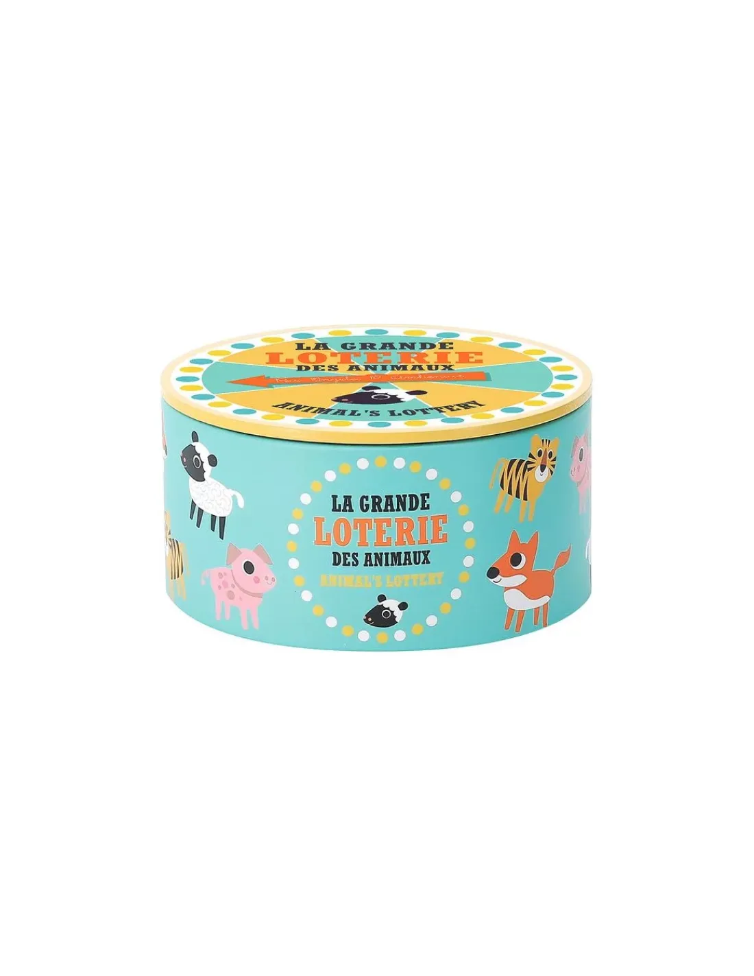 Découvrez le jeu La grande loterie des vaches de Vilac illustré par Ingela P. Arrhenius, un jeu de hasard en bois pour les enfants à partir de 3 ans où le but du jeu est de reconstituer son animal en premier parmi un renard, un mouton, un cochon ou un tigre.