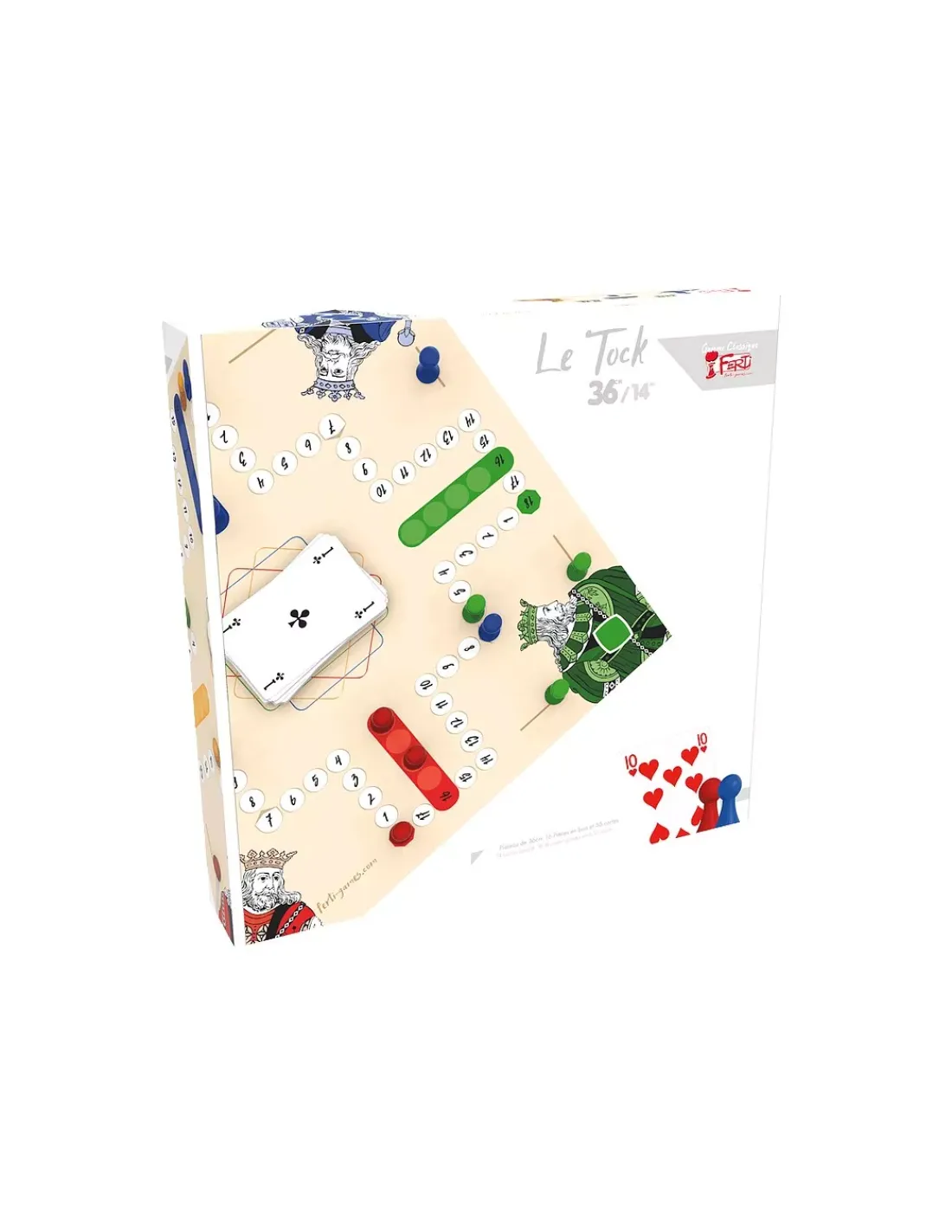 Découvrez le jeu du tock de Ferti, un jeu de plateau traditionnel en bois pour jouer de 2 à 4 joueurs à partir de 6 ans. Un jeu de société proche du jeu des petits chevaux qui se joue avec des cartes.
