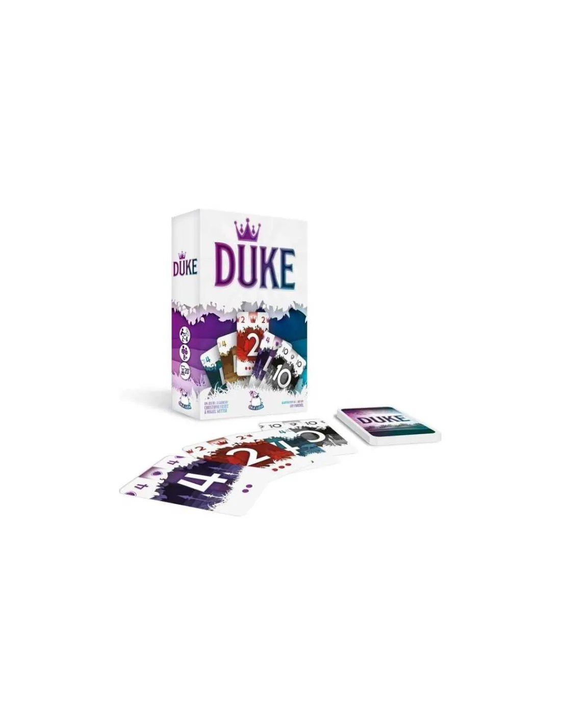 Découvrez le jeu Duke de Oka Luda, un jeu de cartes simple et stratégique pour jouer de 2 à 4 joueurs à partir de 8 ans. Un jeu de société pour des parties rapides, dans lequel vous allez devoir gagner une succession de manches pour remporter la victoire.