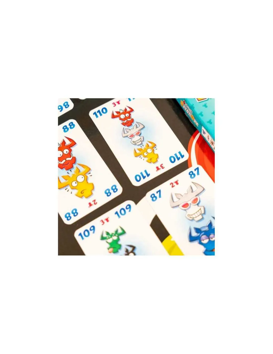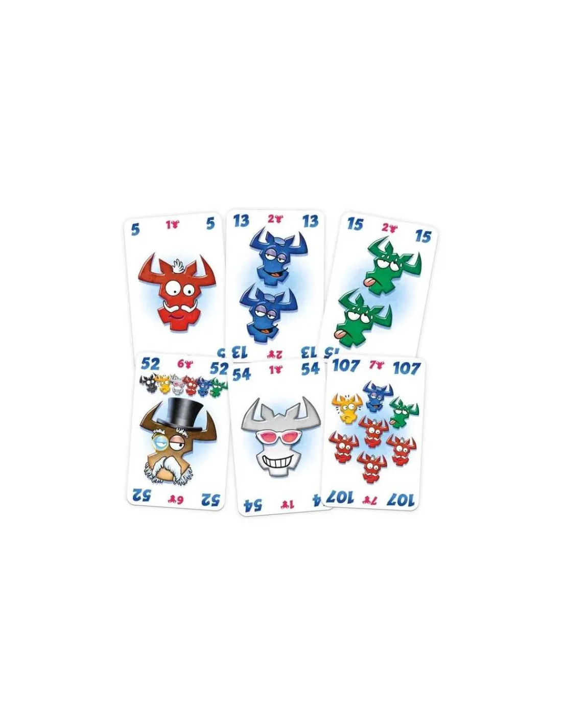 Posez vos cartes dans une des 5 rangées en respectant les couleurs des têtes de bœuf disponibles. Mais attention : si vous posez la 6e carte ou la 6e tête de bœuf de la même couleur d’une rangée, vous devez ramasser les cartes ! Vous récupérez ainsi des points négatifs.
