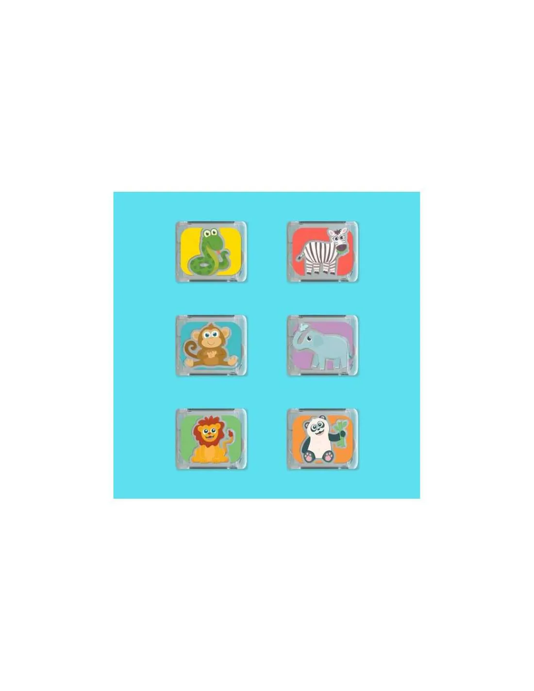 Chaque cube possède un motif différent pour stimuler la curiosité et encourager le jeu libre : un panda, un lion, un zèbre, un serpent, un singe et un éléphant. Réutilisables et faciles à manipuler, ils accompagnent les enfants dans leurs moments de bain ou d’activités sensorielles.
