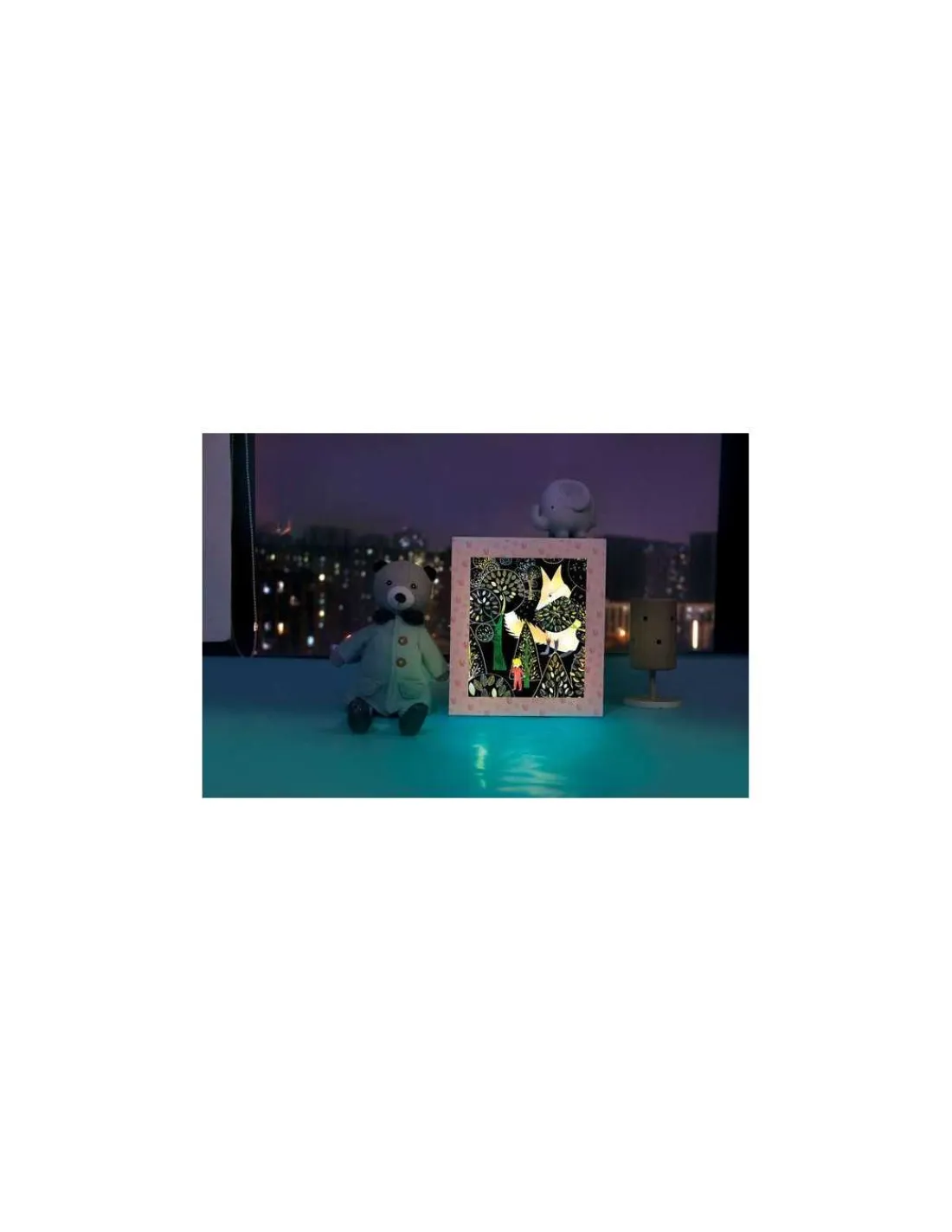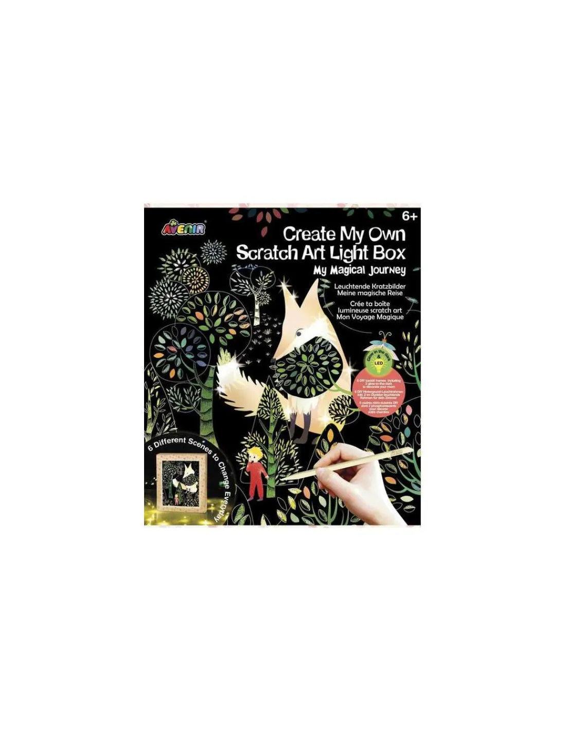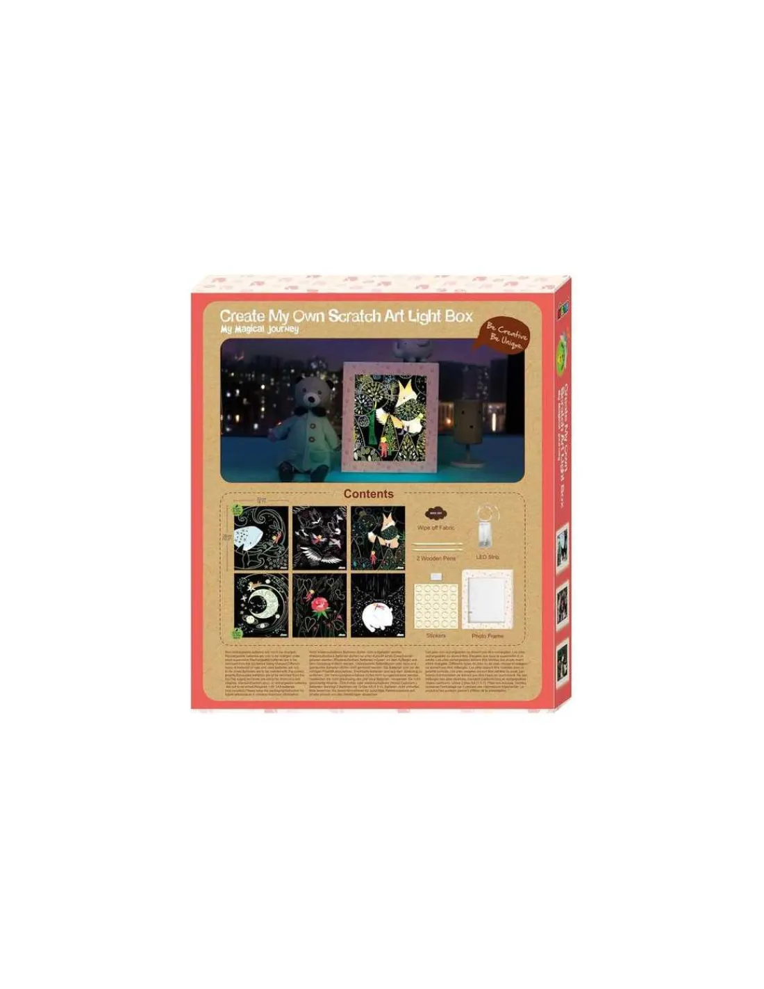 Ce kit permet de créer une magnifique boîte lumineuse en grattant des planches rhodoïd colorées et en les plaçant dans la boîte avec une guirlande lumineuse pour illuminer la chambre de votre enfant. Avec six planches différentes incluses, dont deux phosphorescentes, les possibilités de décoration sont nombreuses, offrant une expérience personnalisable et renouvelable selon les envies.