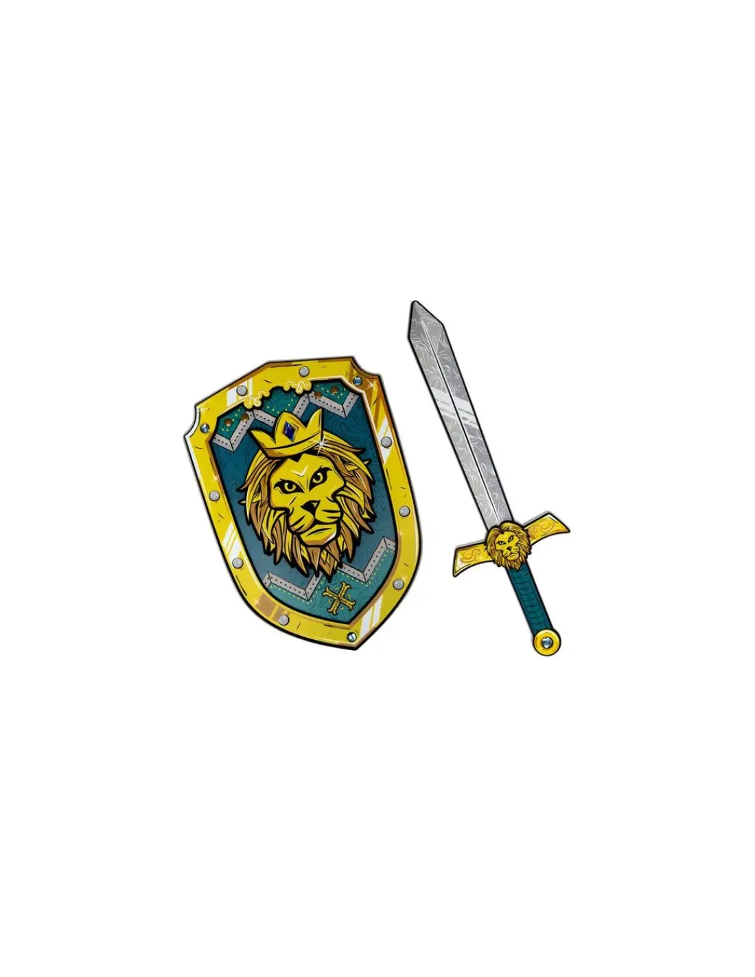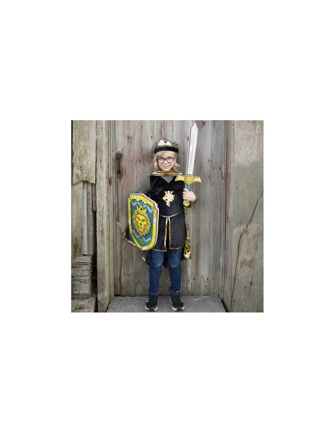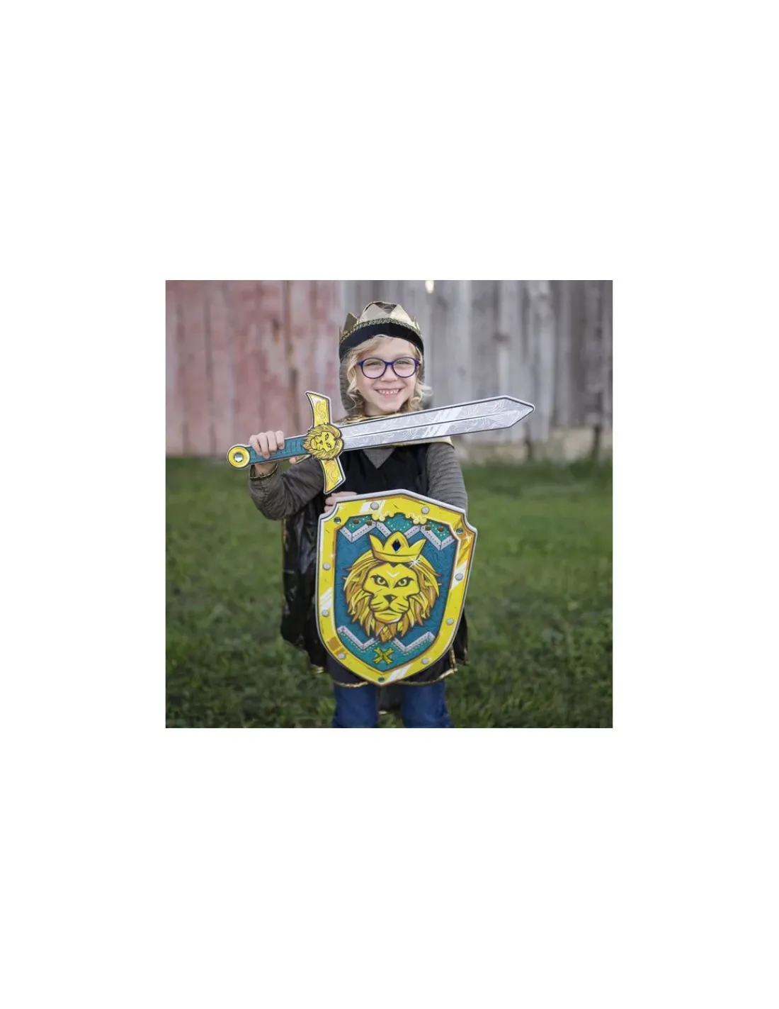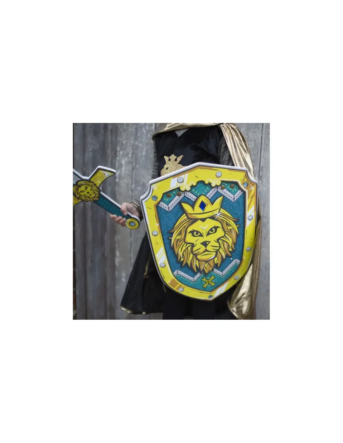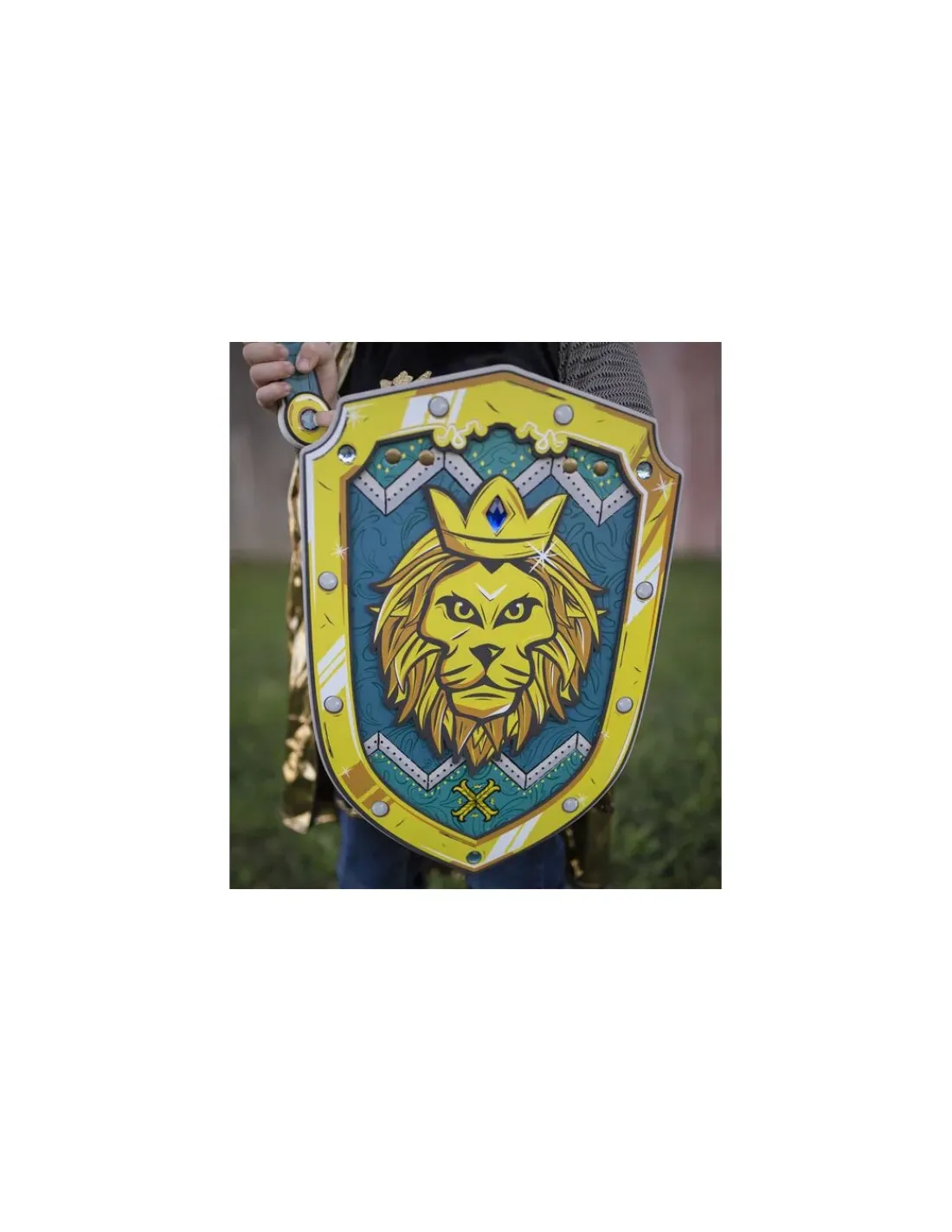 Découvrez le bouclier coeur de lion de Great Pretenders, un superbe bouclier en mousse que votre enfant va adorer. Un accessoire de jeu en mousse avec des diamants strass sur le thème des chevaliers. Le bouclier a une tête de lion dorée portant une couronne avec des pierres précieuses bleu saphir.