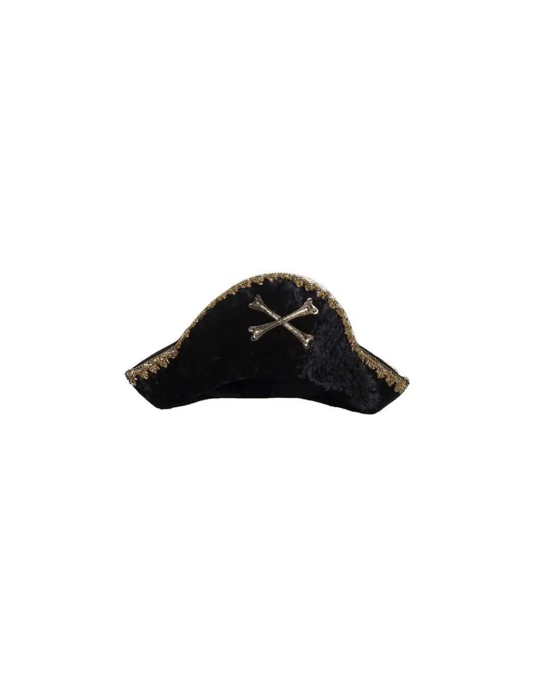 Fabriqué en velours mousse noir doux, ce chapeau est conçu pour accompagner le rythme effréné de la vie de capitaine. Orné d’une bordure dorée métallisée et d’un emblème pirate scintillant. Marqué des légendaires os croisés, signe indéniable d’un chef pirate, il promet de belles aventures ludiques !