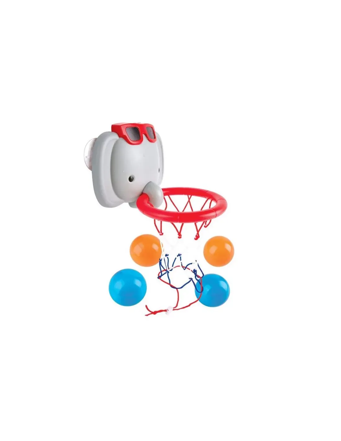 Un éléphant fun et rigolo avec ses lunettes de soleil sur la tête, qui s’accroche facilement aux parois de la baignoire grâce à ses ventouses solides. À l’heure du bain, filles et garçons prendront plaisir à lancer les 4 balles dans le panier de basket que l’animal tient par la trompe.