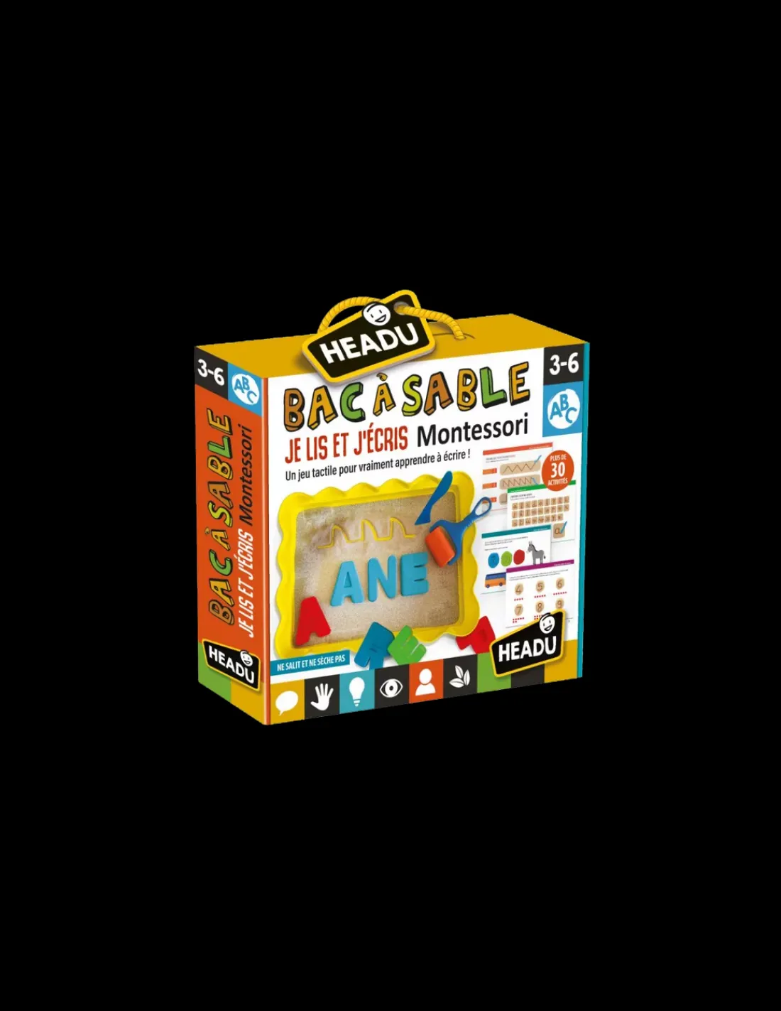 Découvrez le coffret Bac à sable Je lis et j’écris Montessori de Headu, un jeu tactile et éducatif pour apprendre à reconnaitre les chiffres et les lettres et permettant aux enfants de 3 à 6 ans de composer leurs premiers mots.