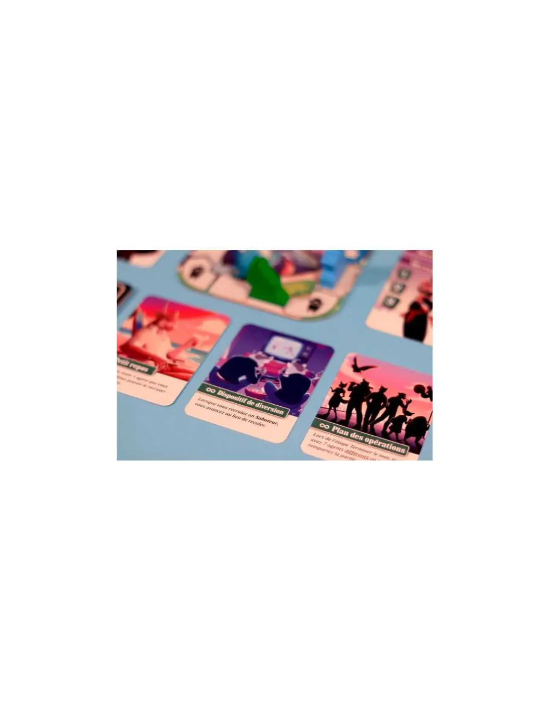 La boite de jeu contient 53 cartes, 1 plateau recto verso, 2 aides de jeu, 2 pions « Espion » et la règle du jeu.