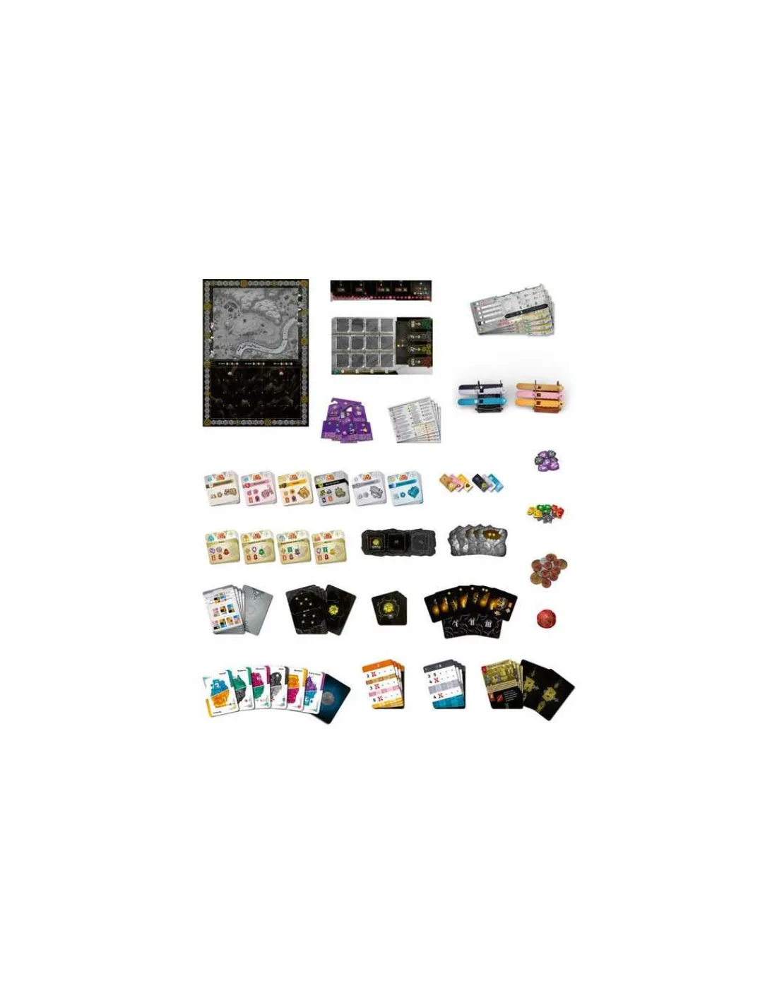 La boite de jeu contient 1 plateau Kutna Hora, 1 piste Manche, 1 plateau Hôtel de ville, 4 plateaux Joueur, 2 Présentoirs, 24 tuiles Bâtiment de guilde, 12 jetons Guilde, 18 jetons Pélican, 12 jetons Aristocrates, 12 tuiles Bâtiment public, 1 plateau Prospection, 4 tuiles Rocher, 53 pièces, 9 cartes Mise en place des guildes, 15 cartes Mise en place de la mine, 4 tuiles Technologie minière, 27 tuiles Mine, 1 jetons Premier joueur, 6 cartes Action par joueur, 21 cartes Population, 16 cartes Minerai, 10 cartes Évènement, 1 compteur de manches, 1 pion impôts, 12 pions Maison par joueur, 9 pions Mineur, 3 marqueurs Parcelle, 6 compteurs Production, 1 pion Réputation, 1 pion Score et 1 règle du jeu.