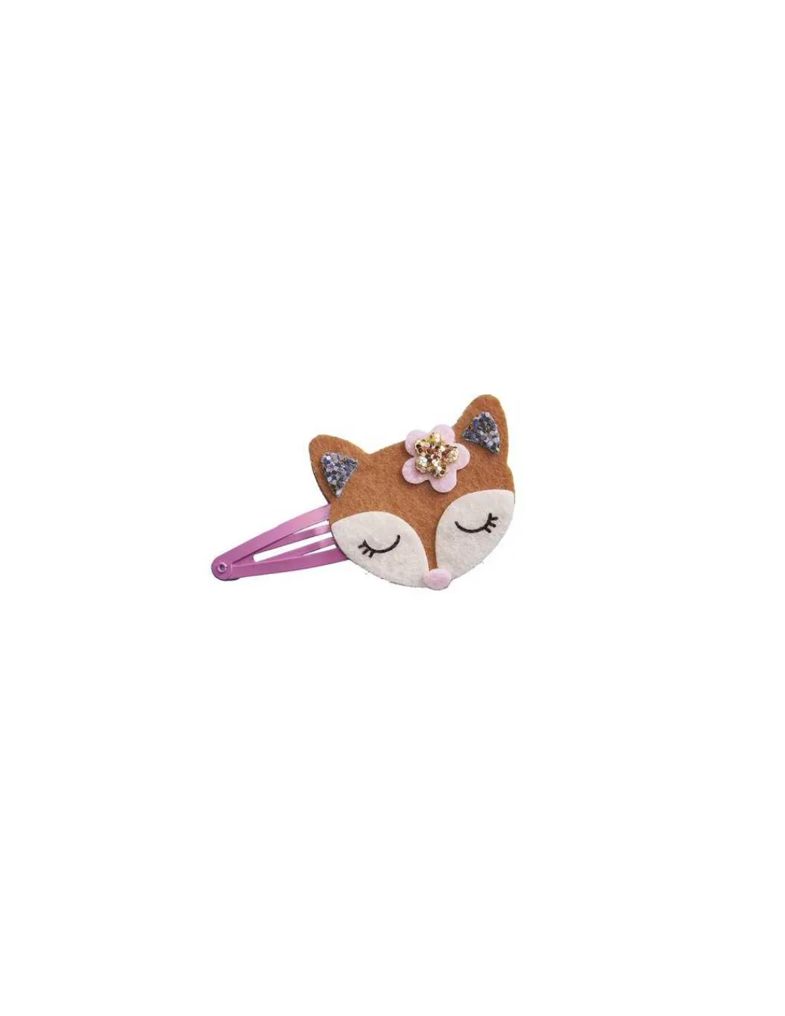 Le coffret comprend tout le matériel nécessaire pour réaliser de superbes barrettes sur le thème de la forêt, à l’aide de feutrine, de matière pailletée autocollante et de pompons.