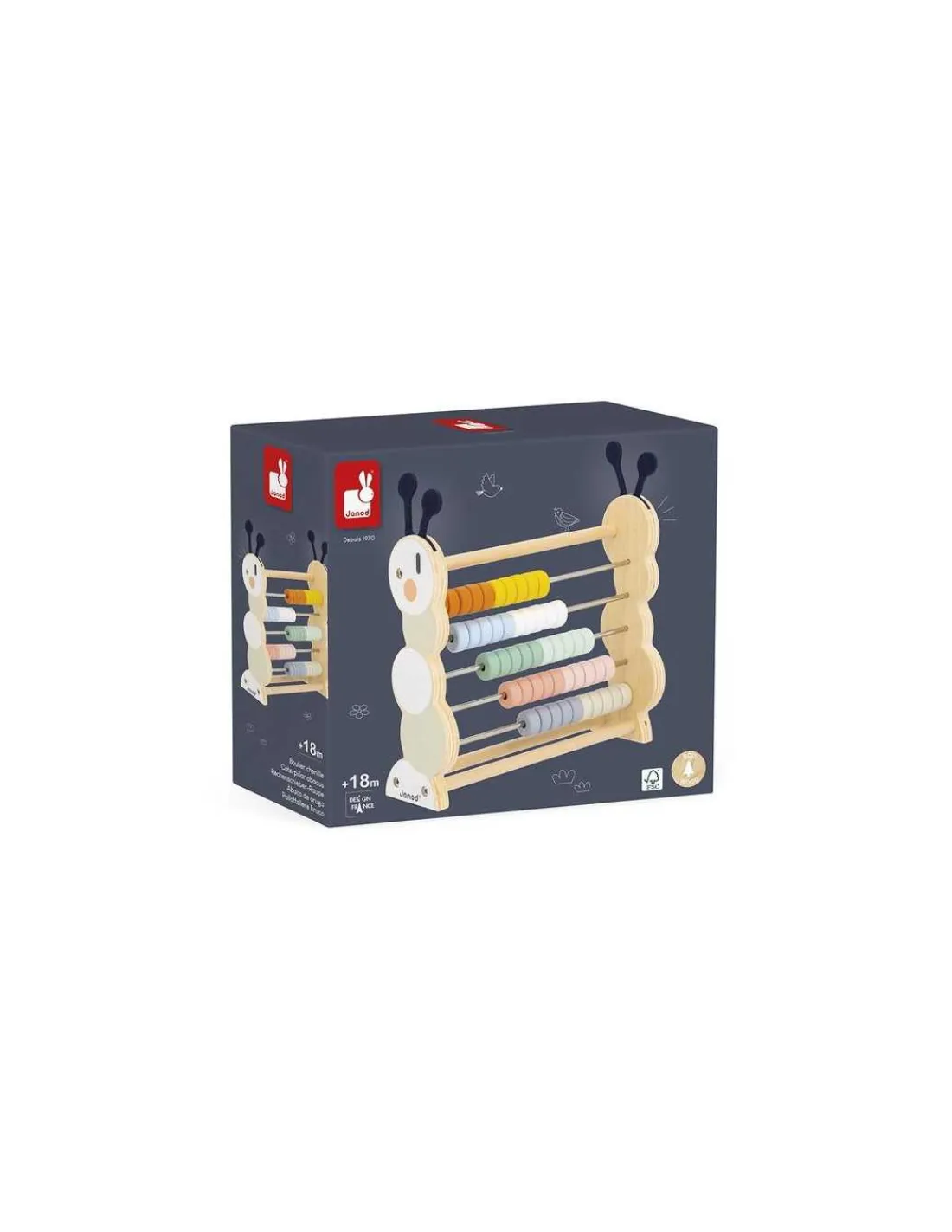 Découvrez le boulier chenille de la collection Sweet Cocoon de Janod, un jouet en bois conçu pour éveiller la curiosité des enfants dès 18 mois.