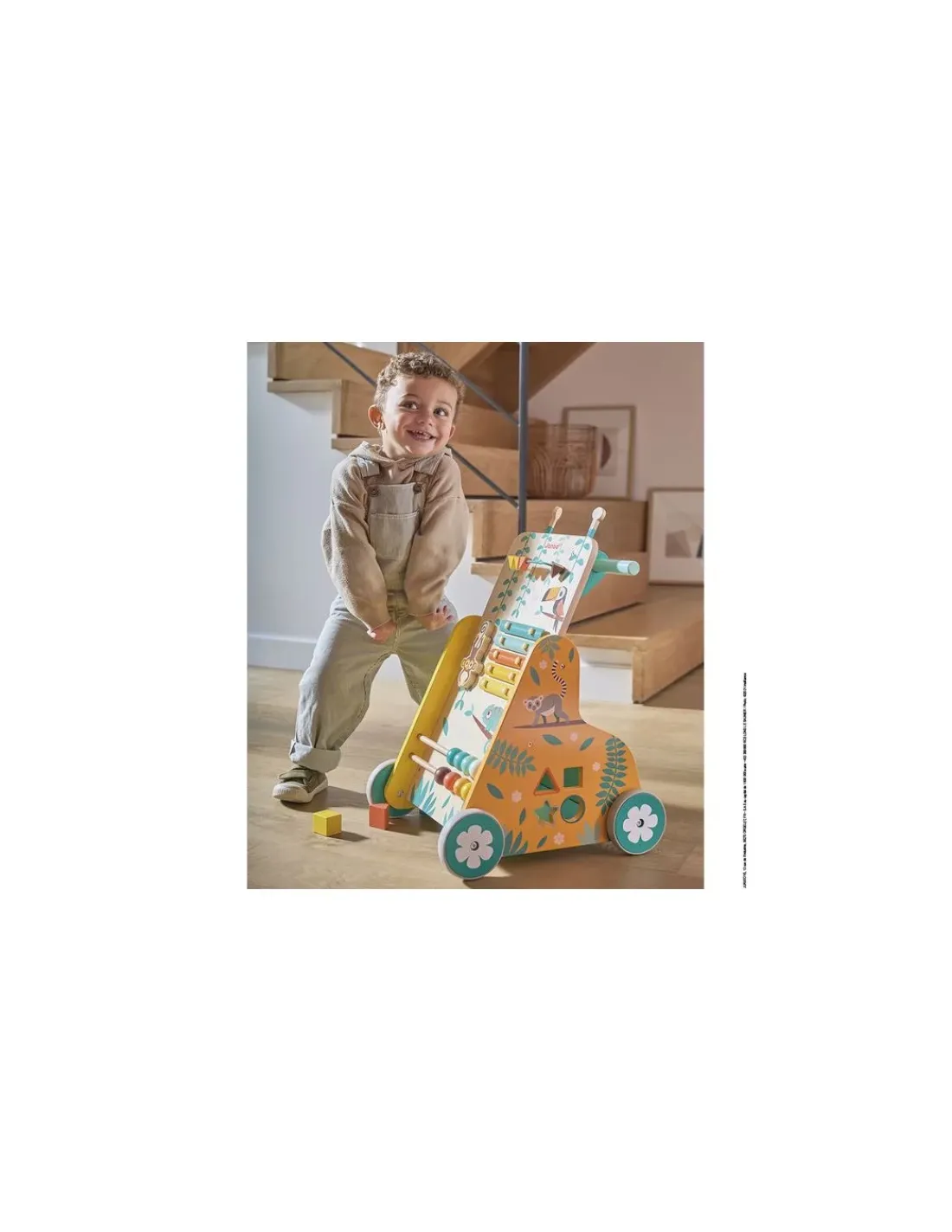 Découvrez le chariot de marche multi activités Tropik de Janod, un chariot évolutif à pousser pour apprendre à marcher et pour éveiller les enfants de 1 à 3 ans avec 6 activités de motricité.