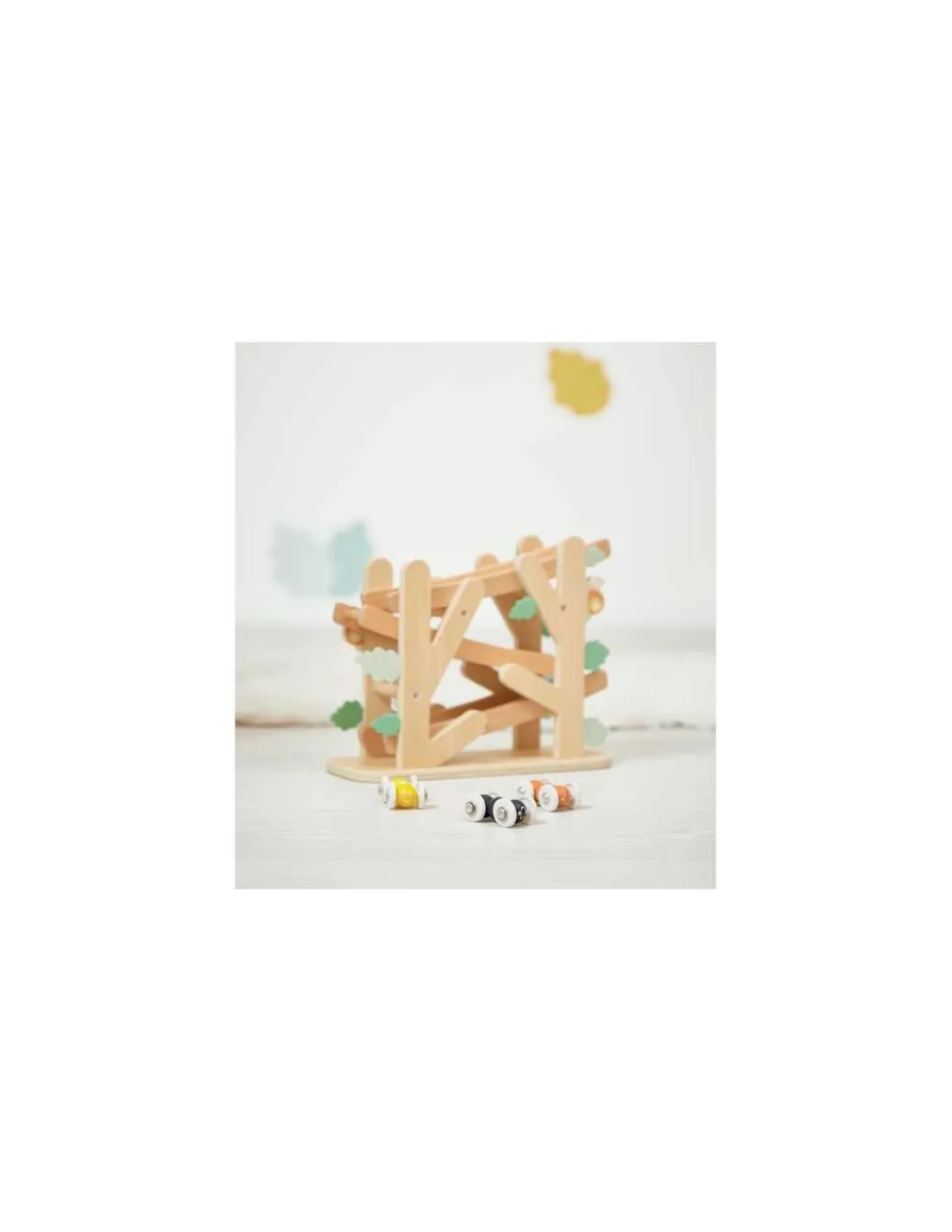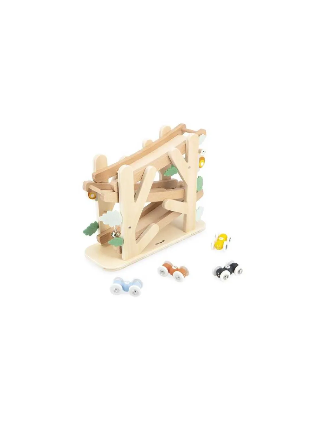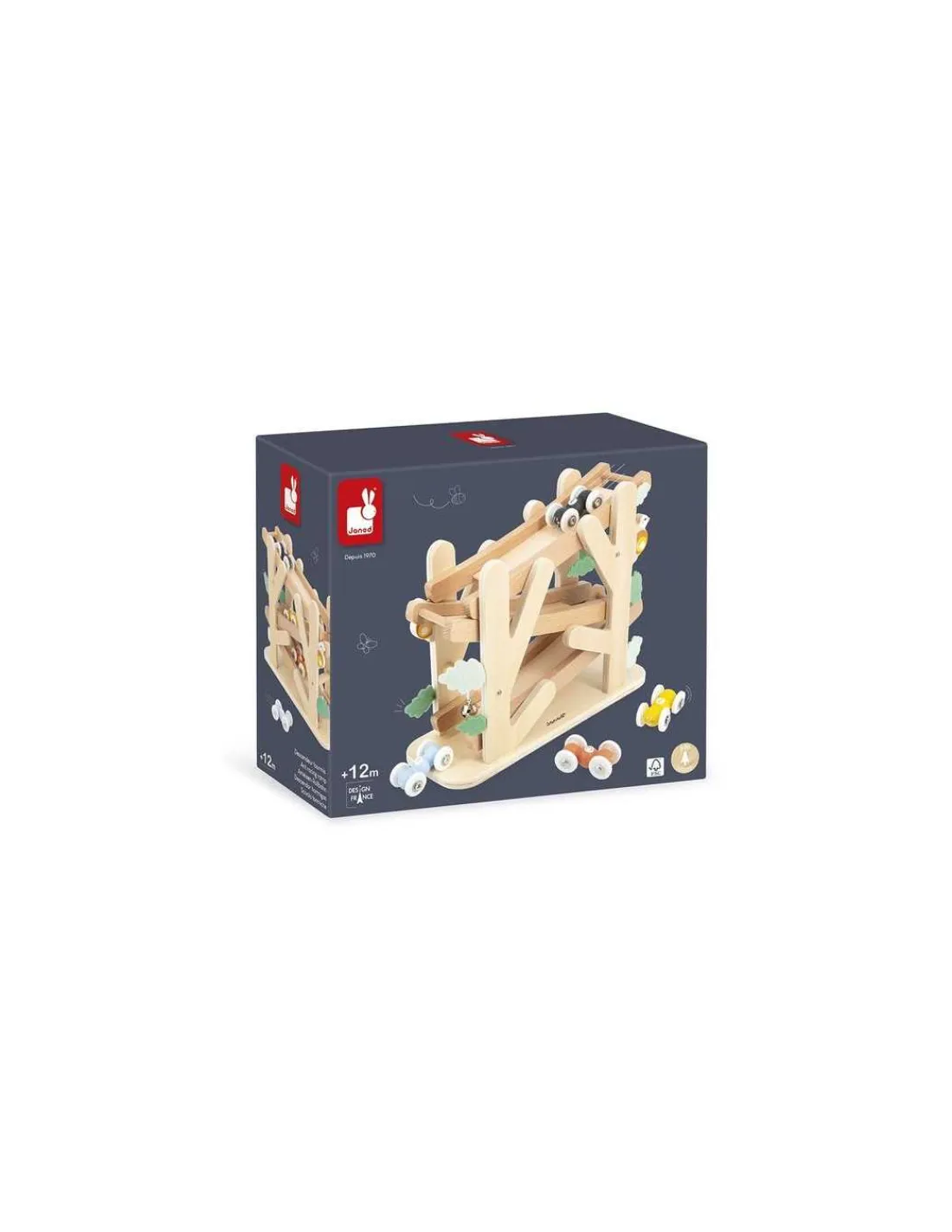 Découvrez le descendeur fourmis de Janod, un jouet d’éveil en bois pour les enfants dès 12 mois avec 4 voitures en forme de fourmis à faire descendre le long du chemin.