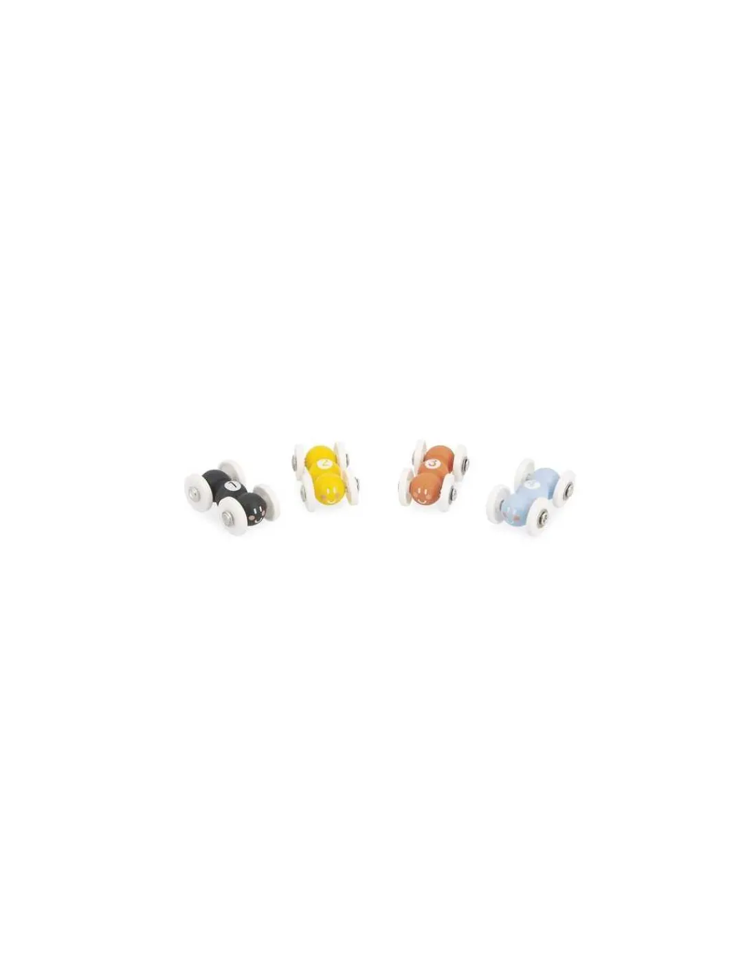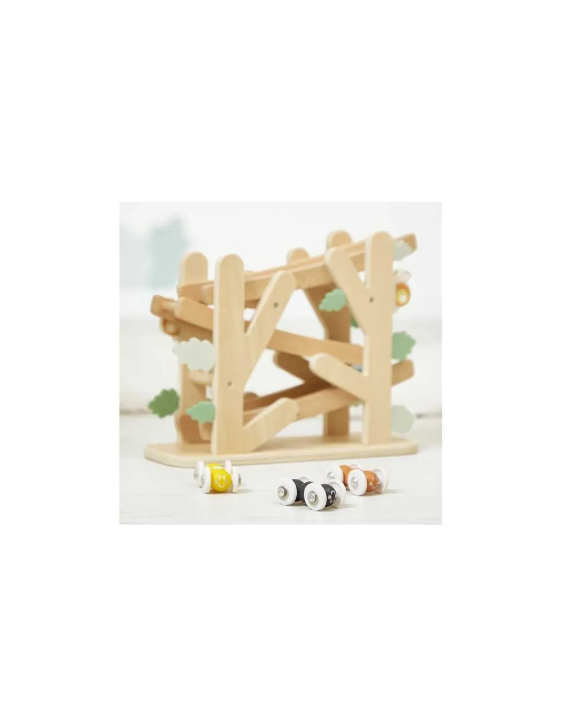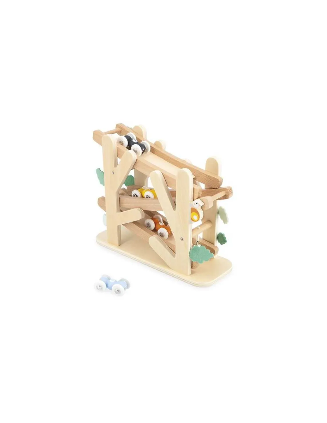 Découvrez le descendeur fourmis de Janod, un jouet d’éveil en bois pour les enfants dès 12 mois avec 4 voitures en forme de fourmis à faire descendre le long du chemin.