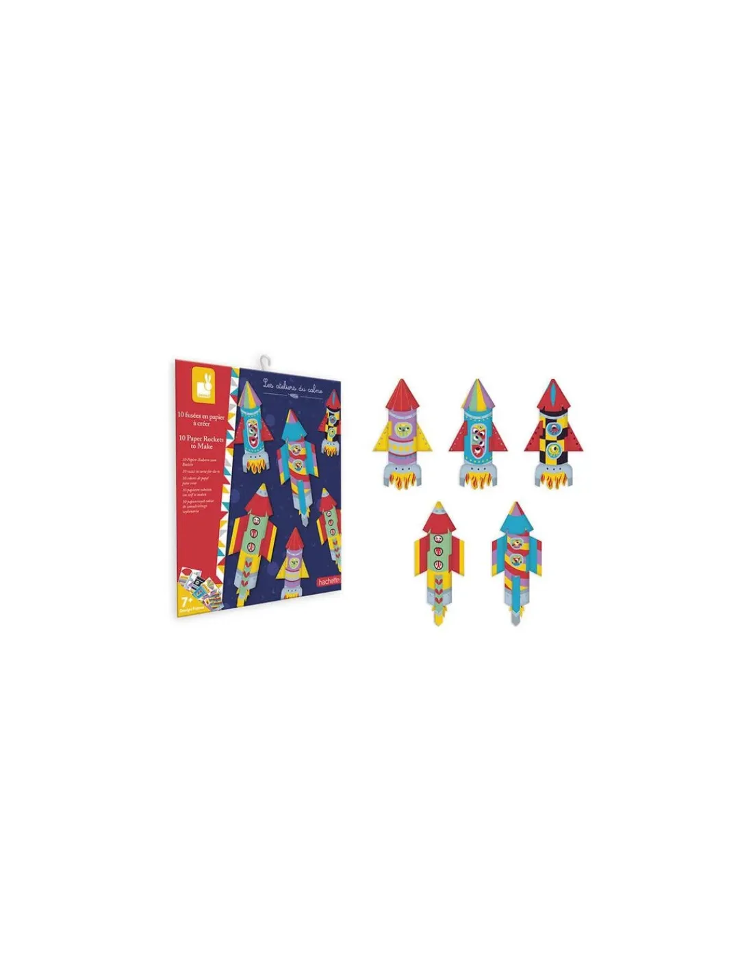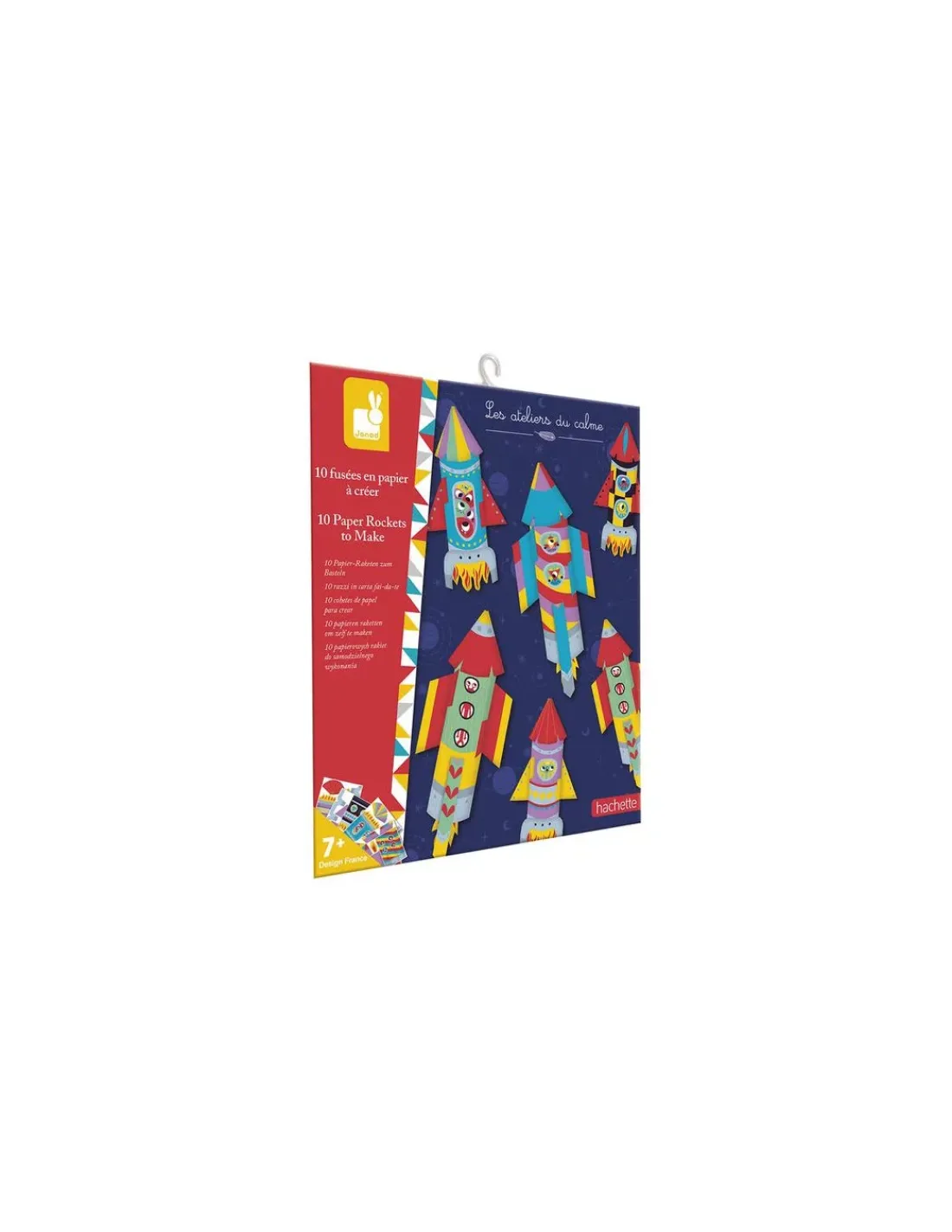 Découvrez la pochette créative 10 Fusées en papier à créer de la collection Les ateliers du calme de Janod, une activité ludique et amusante sur le thème de l’espace pour les enfants dès 7 ans.
