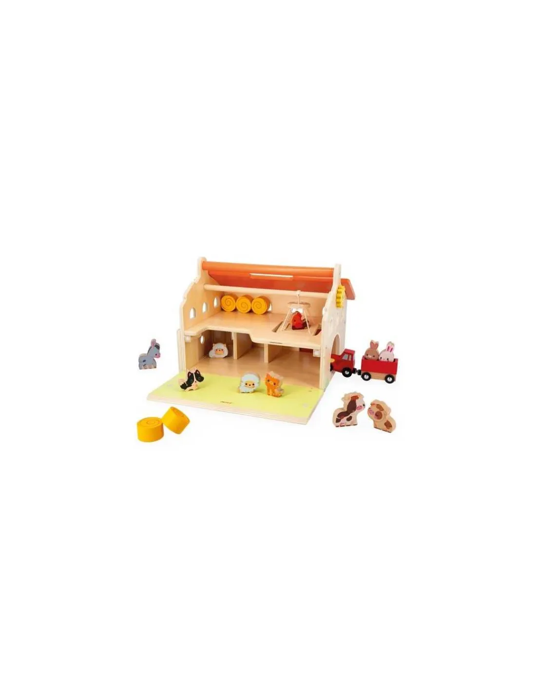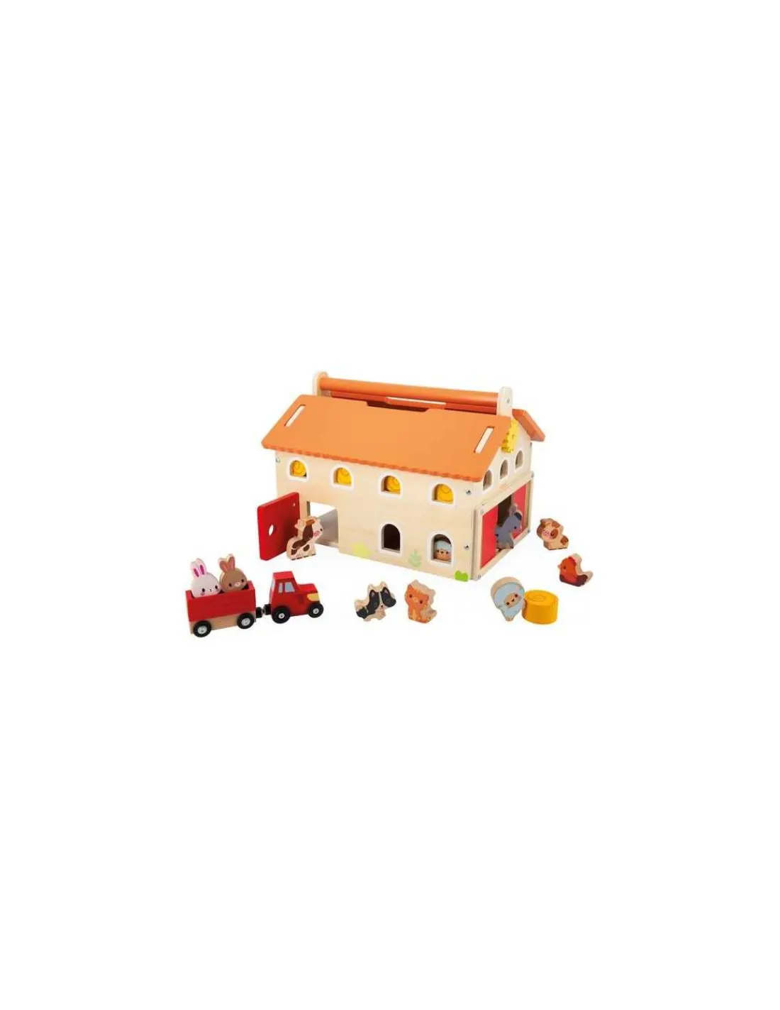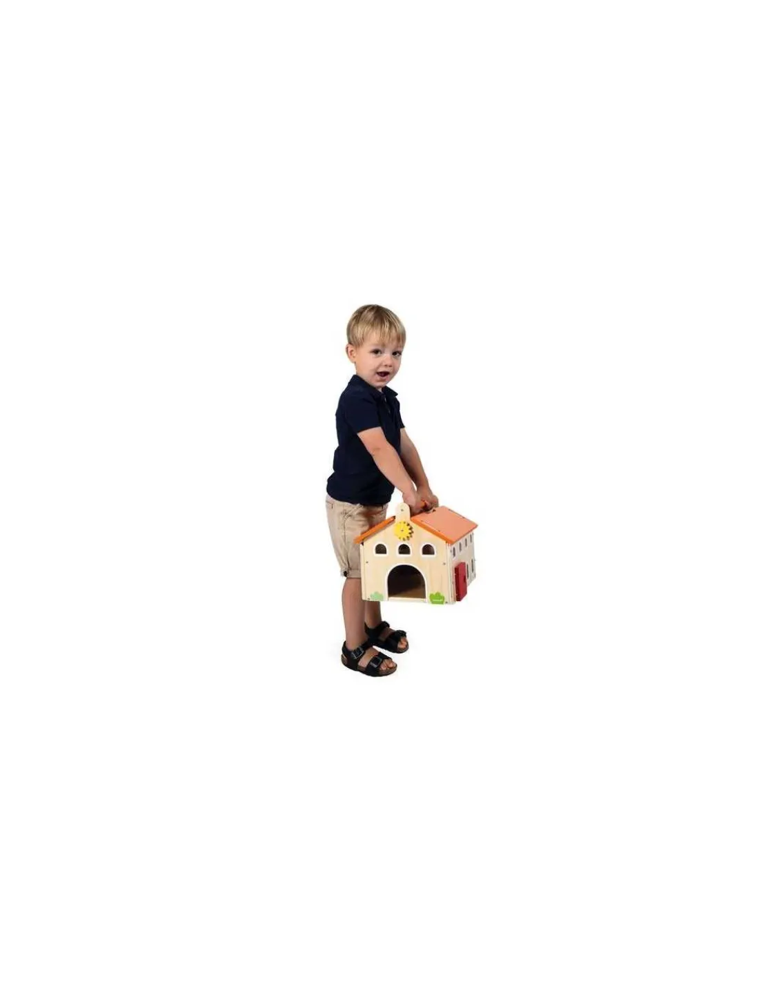 Pratique, grâce à sa poignée vous pourrez transporter cette jolie ferme facilement. Un jouet en bois d’une grande qualité, idéal pour développer l’imagination et découvrir l’univers de la ferme en s’amusant.
