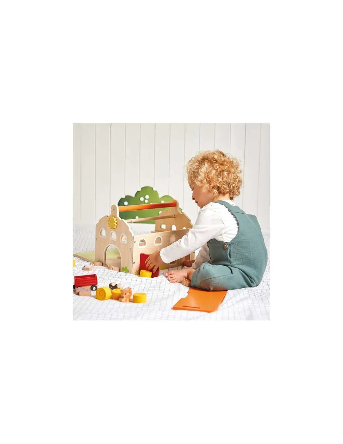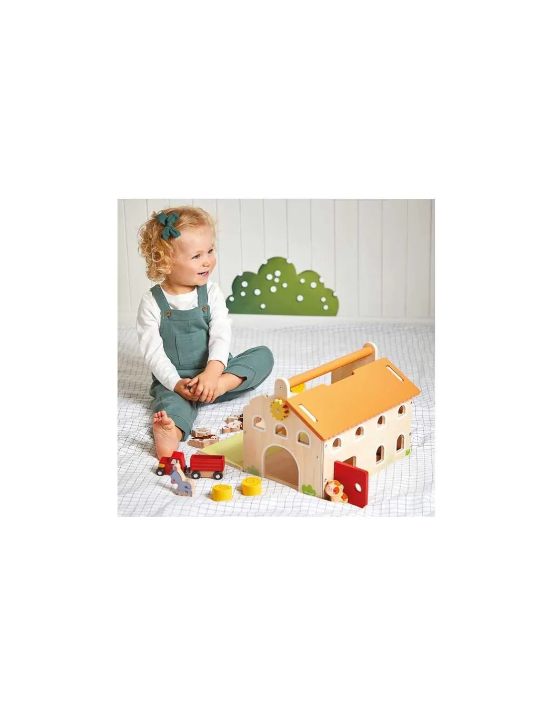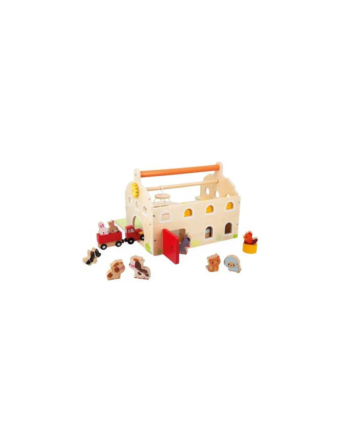 Pratique, grâce à sa poignée vous pourrez transporter cette jolie ferme facilement. Un jouet en bois d’une grande qualité, idéal pour développer l’imagination et découvrir l’univers de la ferme en s’amusant.