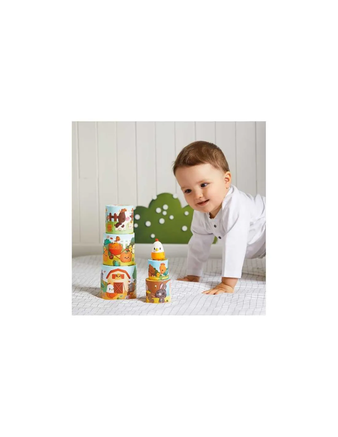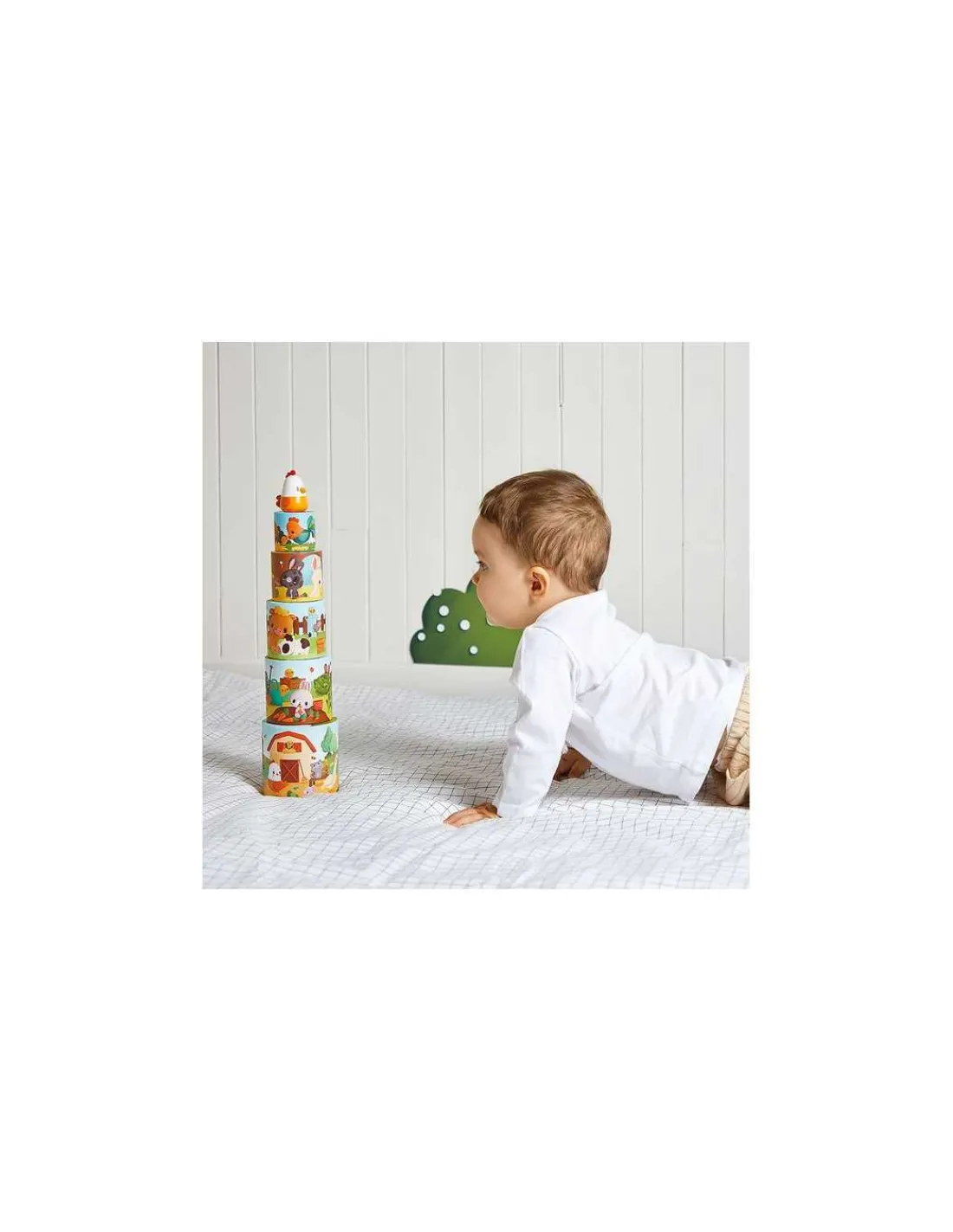 Une pyramide de 5 éléments ronds, riche en couleurs, avec de belles illustrations pleines de détails amusants. Un magnifique jouet d’éveil à offrir en cadeau à bébé et grâce auquel il pourra développer sa dextérité et son sens de l’observation.