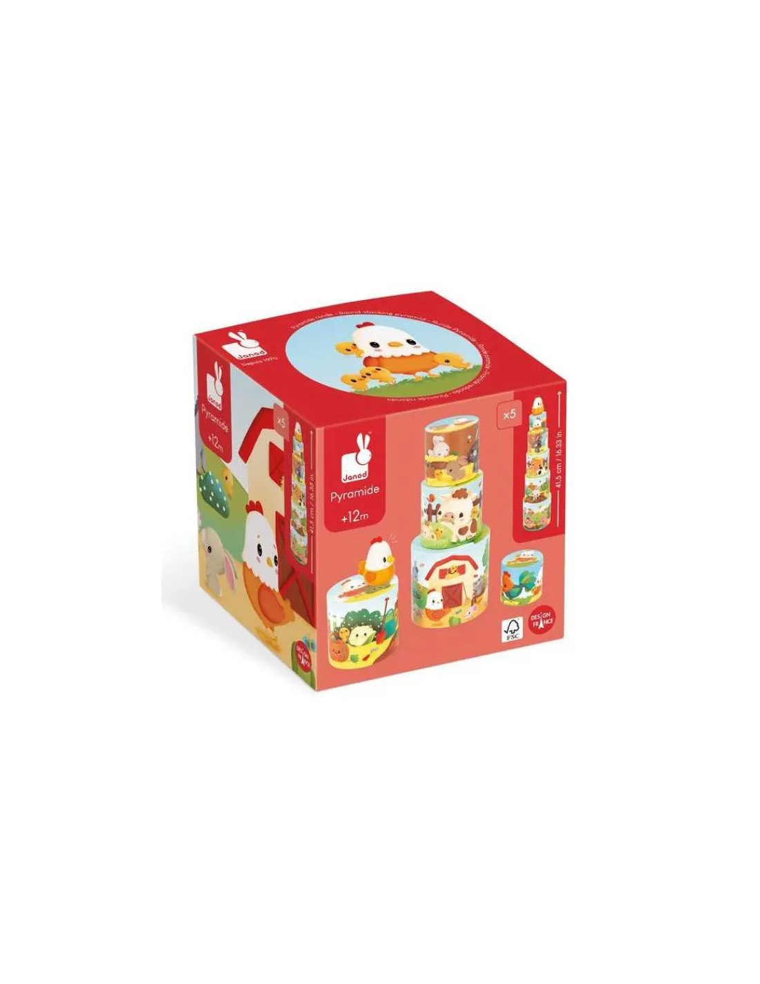 Découvrez Ma première pyramide Poule de la collection Ferme de Janod, un jouet d’éveil composé de 5 cylindres à empiler et d’une figurine en forme de poule. Une pyramide ronde qui fera le bonheur des enfants dès 12 mois.