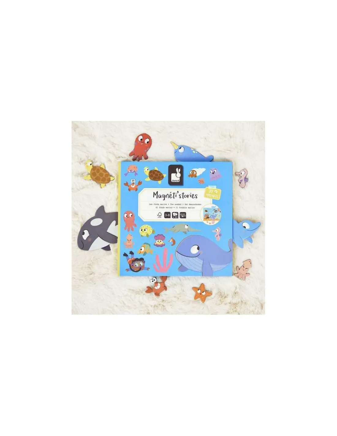 Découvrez le Magnéti’stories Les fonds marins de Janod, un jeu magnétique dans lequel les enfants dès 3 ans, vont s’amuser à imaginer des scènes grâce à des magnets sur le thème de la mer.