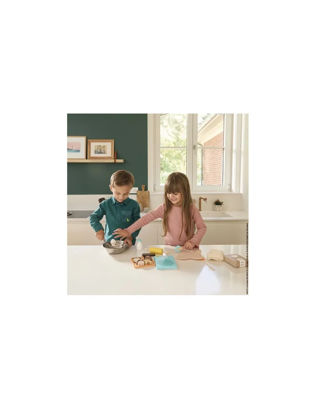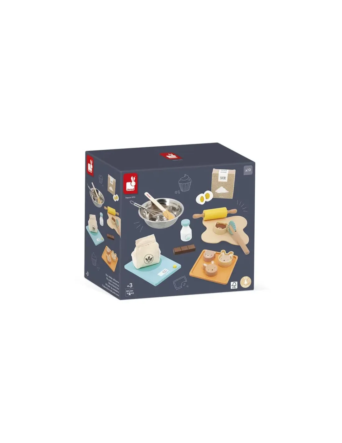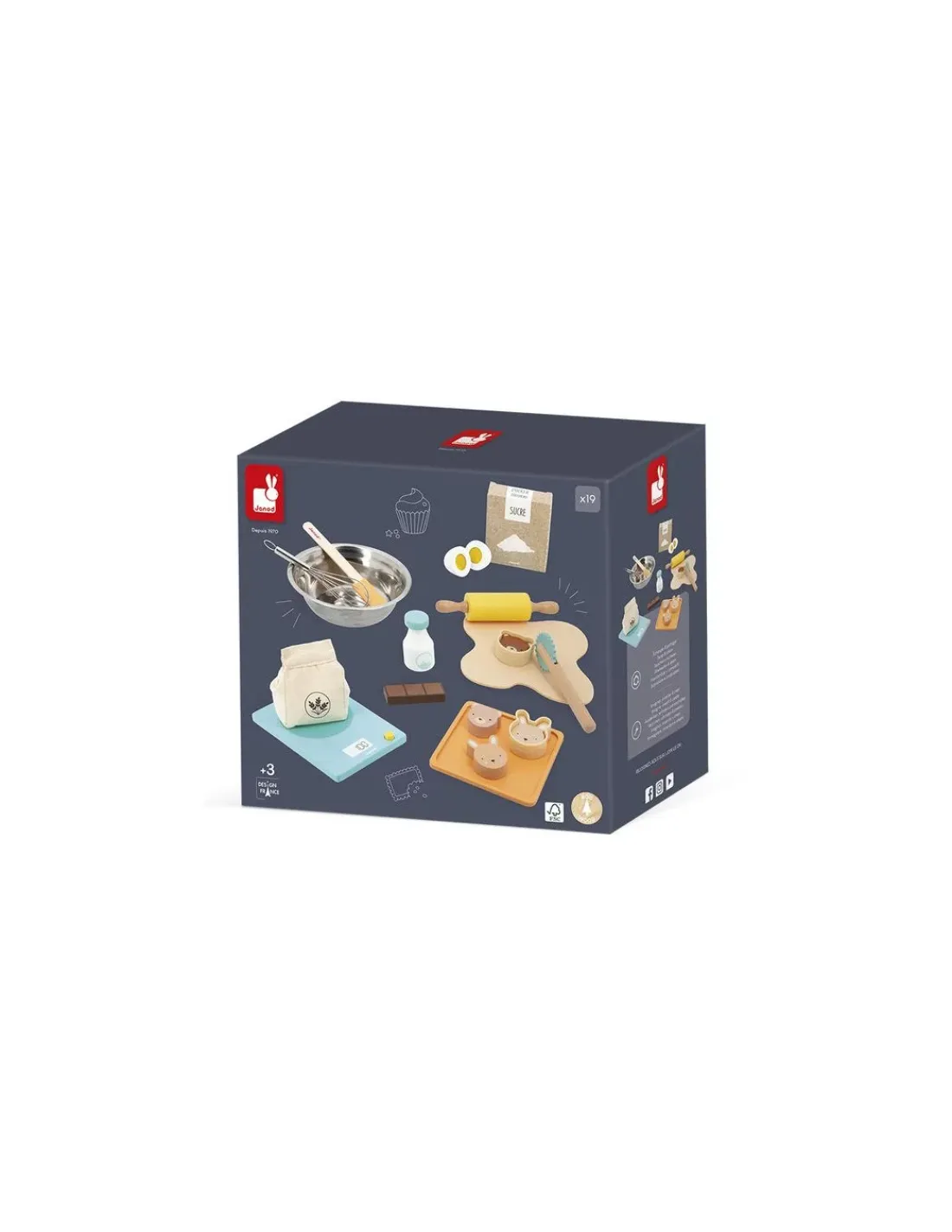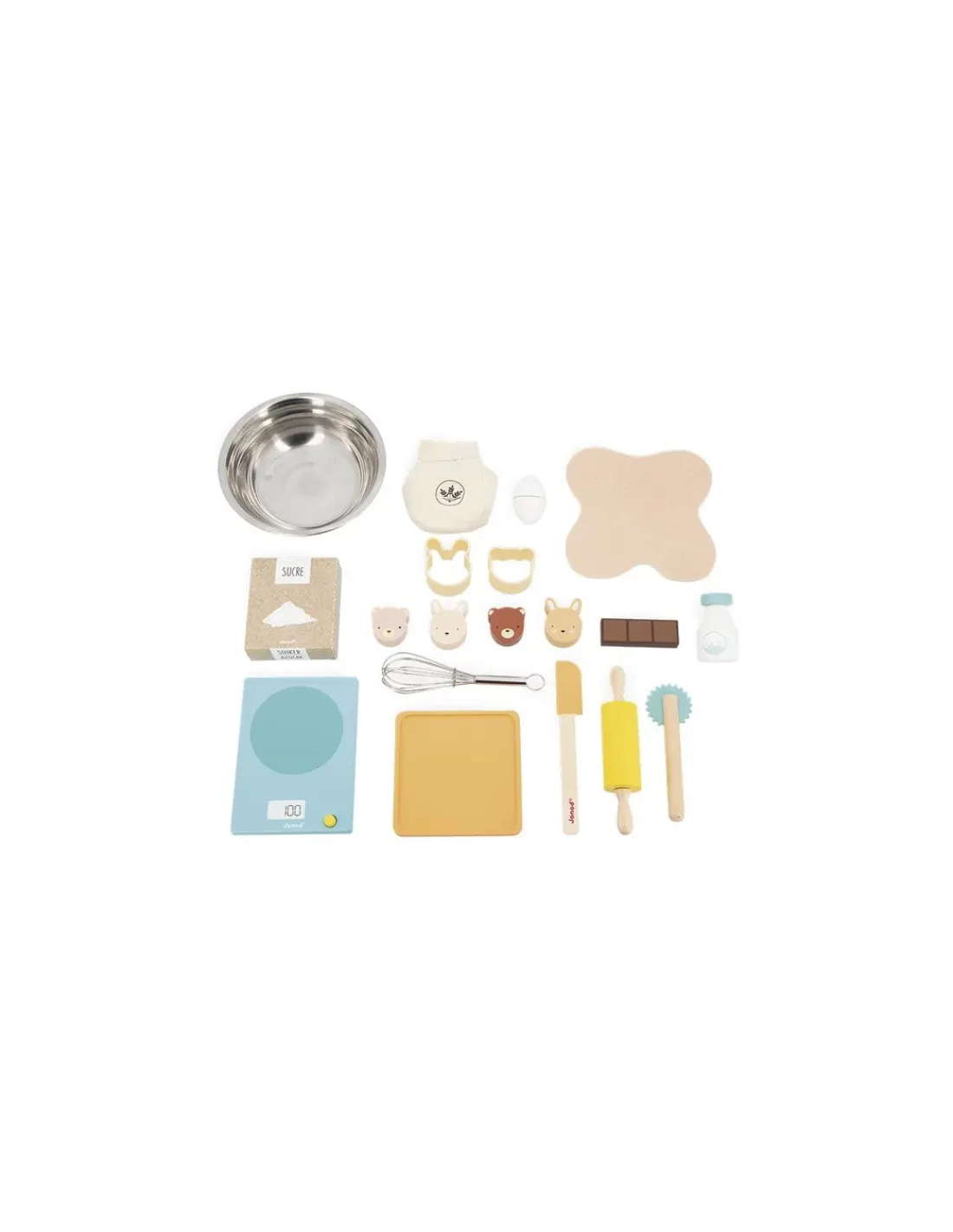 Découvrez le coffret mon atelier de pâtisserie de Janod, une dinette en bois de 19 pièces sur le thème de la pâtisserie pour les enfants à partir de 3 ans.