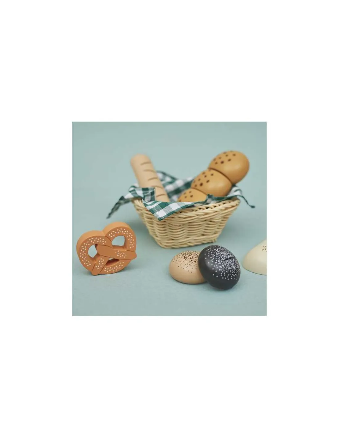 Idéal pour jouer au boulanger, ce set ludique et réaliste invite les enfants à découvrir et manipuler différents pains. Ce joli panier contient une délicieuse sélection de pains en bois : une baguette, un pain de campagne, deux pains ronds, un bretzel et une brioche à découper. Chaque élément est soigneusement conçu pour offrir une expérience réaliste.