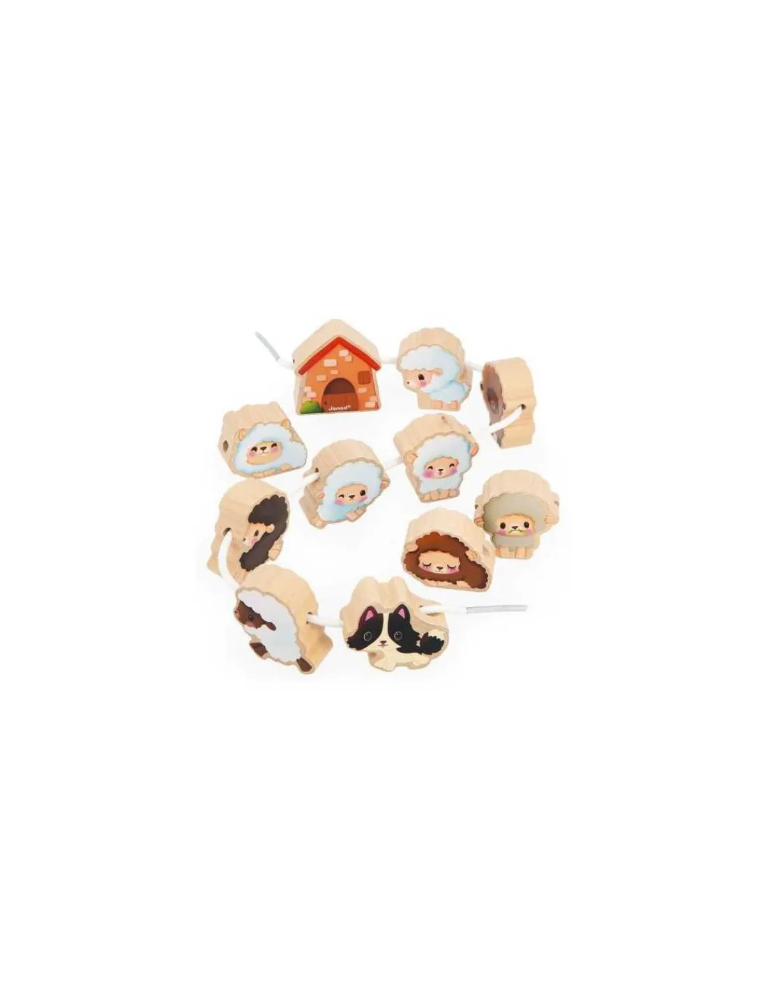 Découvrez les perles à enfiler Moutons de la collection Ferme de Janod, un coffret composé de 11 grosses perles en bois et de 2 cordons. Une activité idéale pour développer la motricité fine des enfants dès 2 ans.