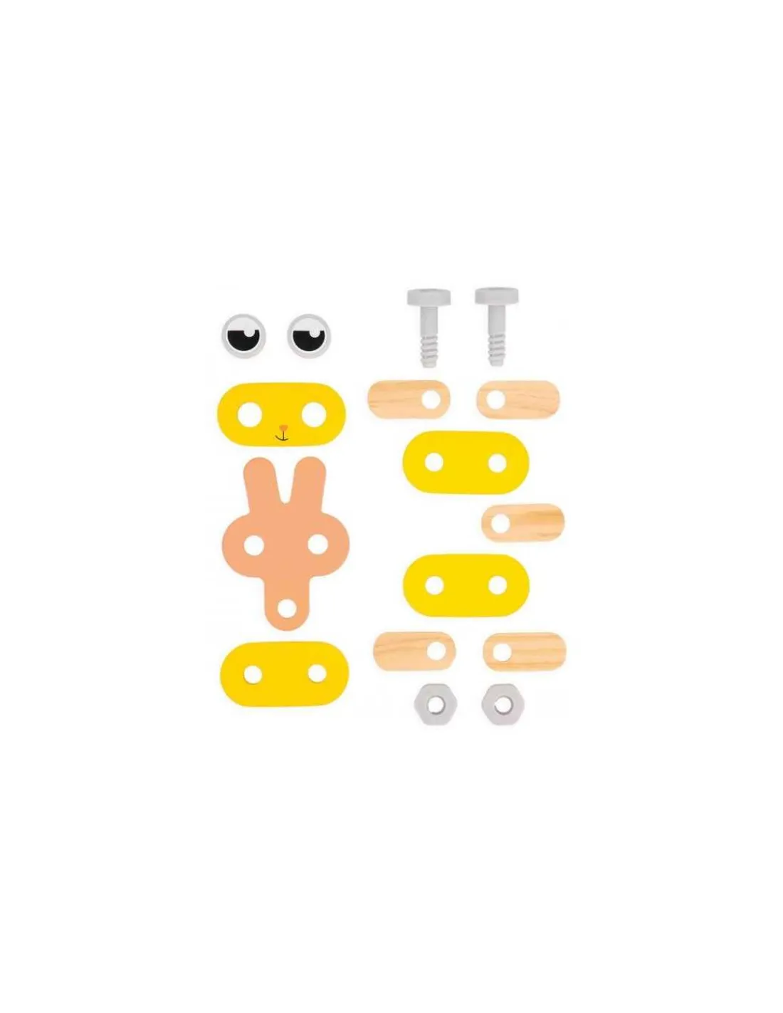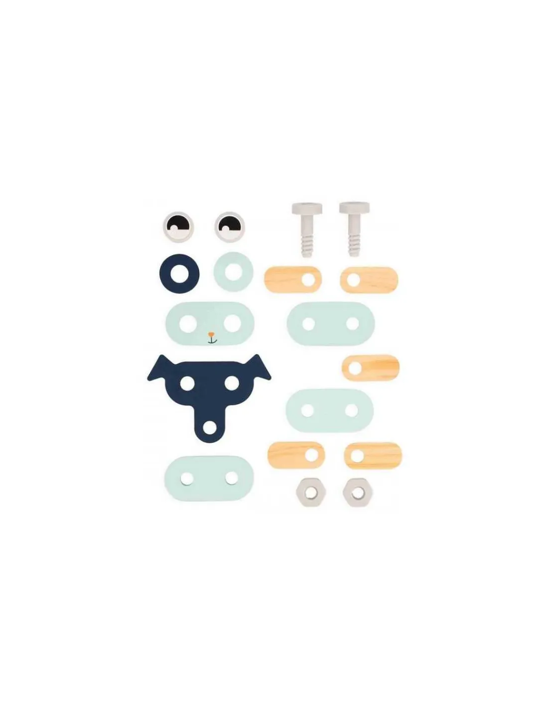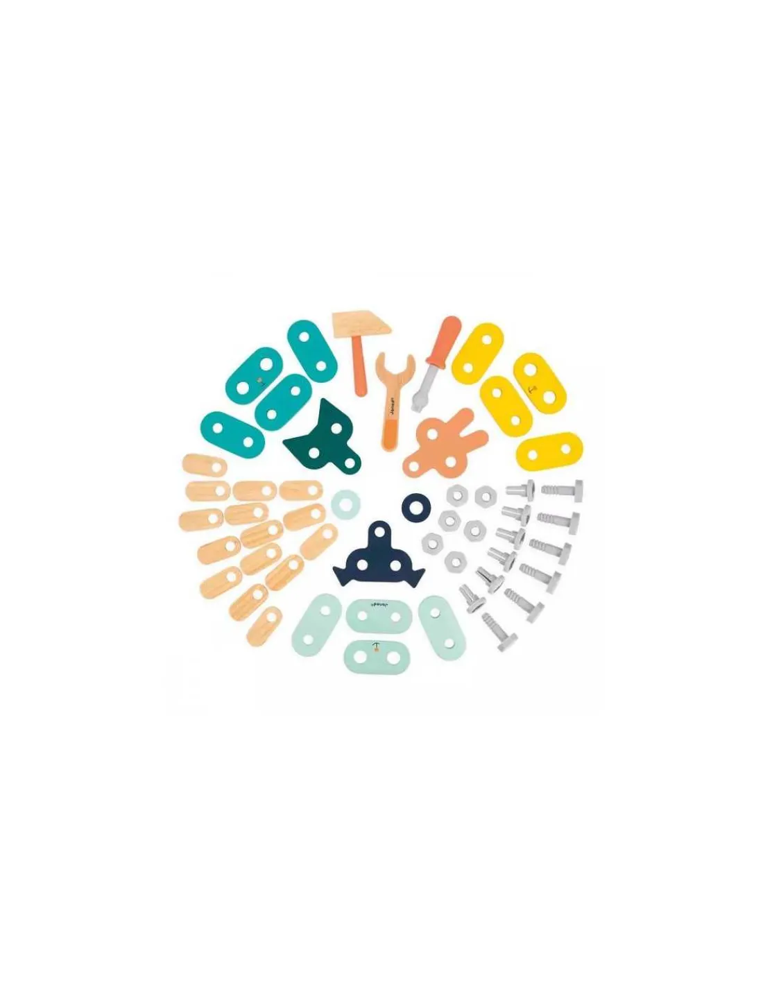 Ce coffret comprend 3 outils adaptés aux petites mains, ainsi que 32 pièces en bois et 18 éléments en plastique. Les vis, écrous et clous en plastique sont spécialement conçus pour la sécurité et la facilité d’utilisation des enfants.