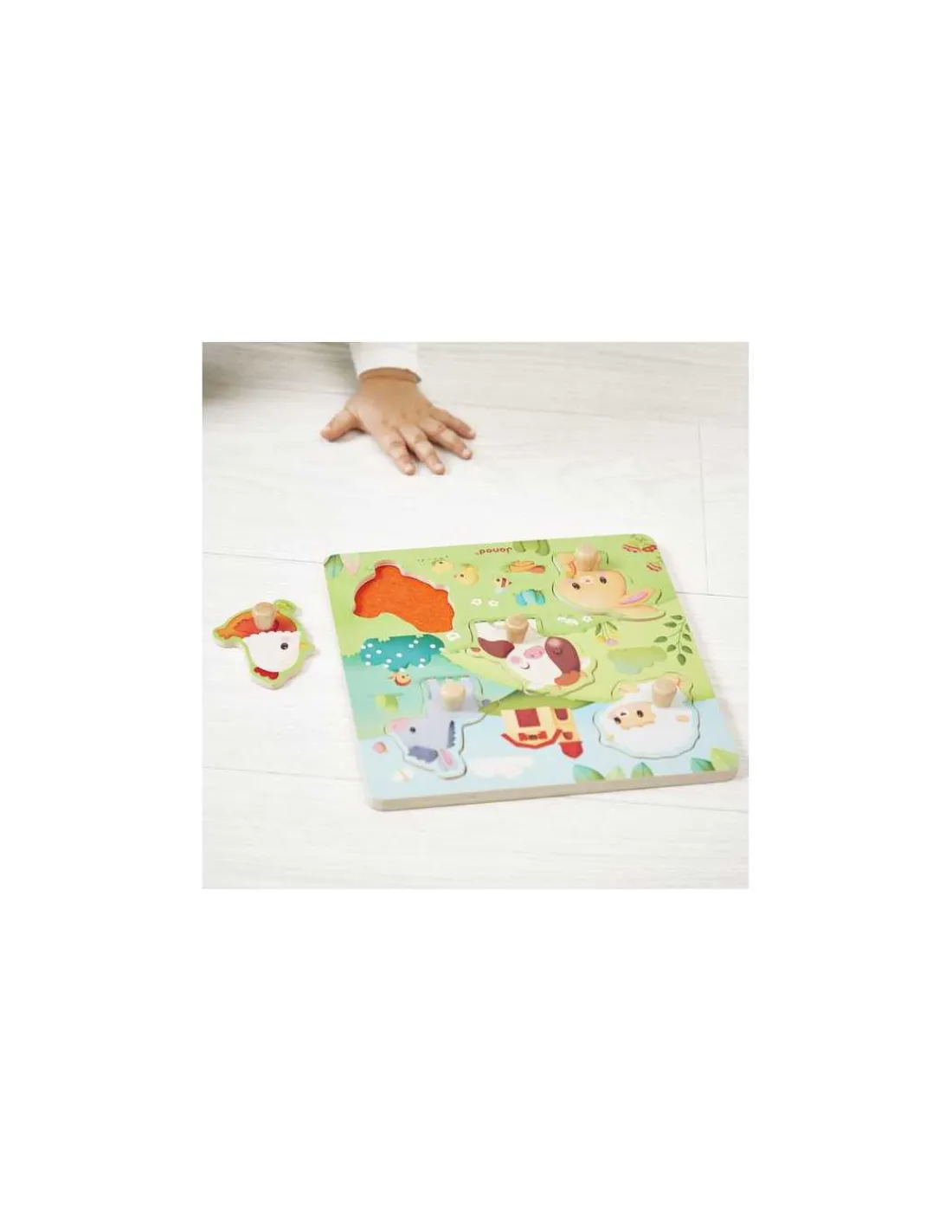 Découvrez le puzzle tactile Ferme de Janod, un jouet en bois conçu pour les enfants dès 18 mois. Avec ses 5 pièces à encastrer, ce puzzle en bois invite les enfants à explorer le monde de la ferme tout en s’amusant.