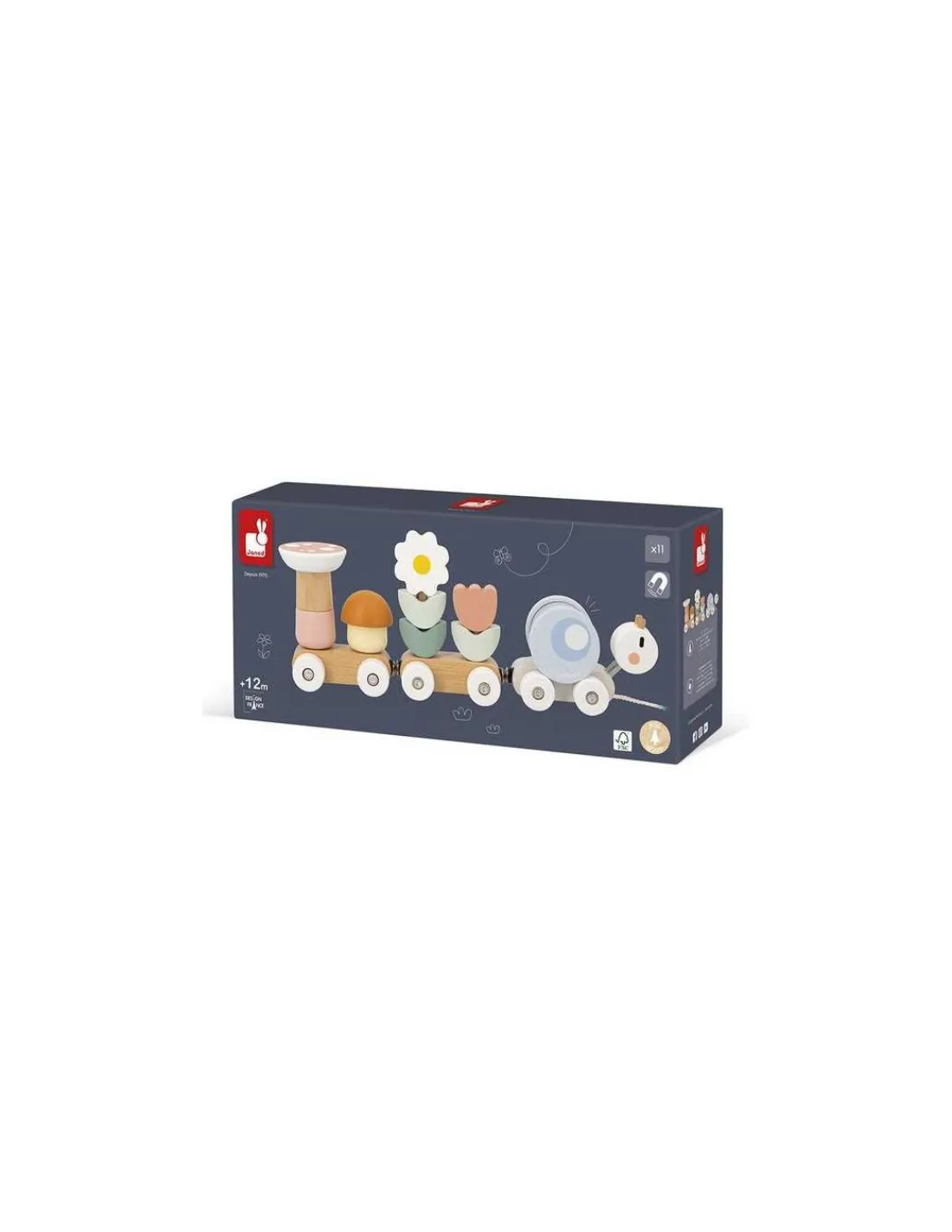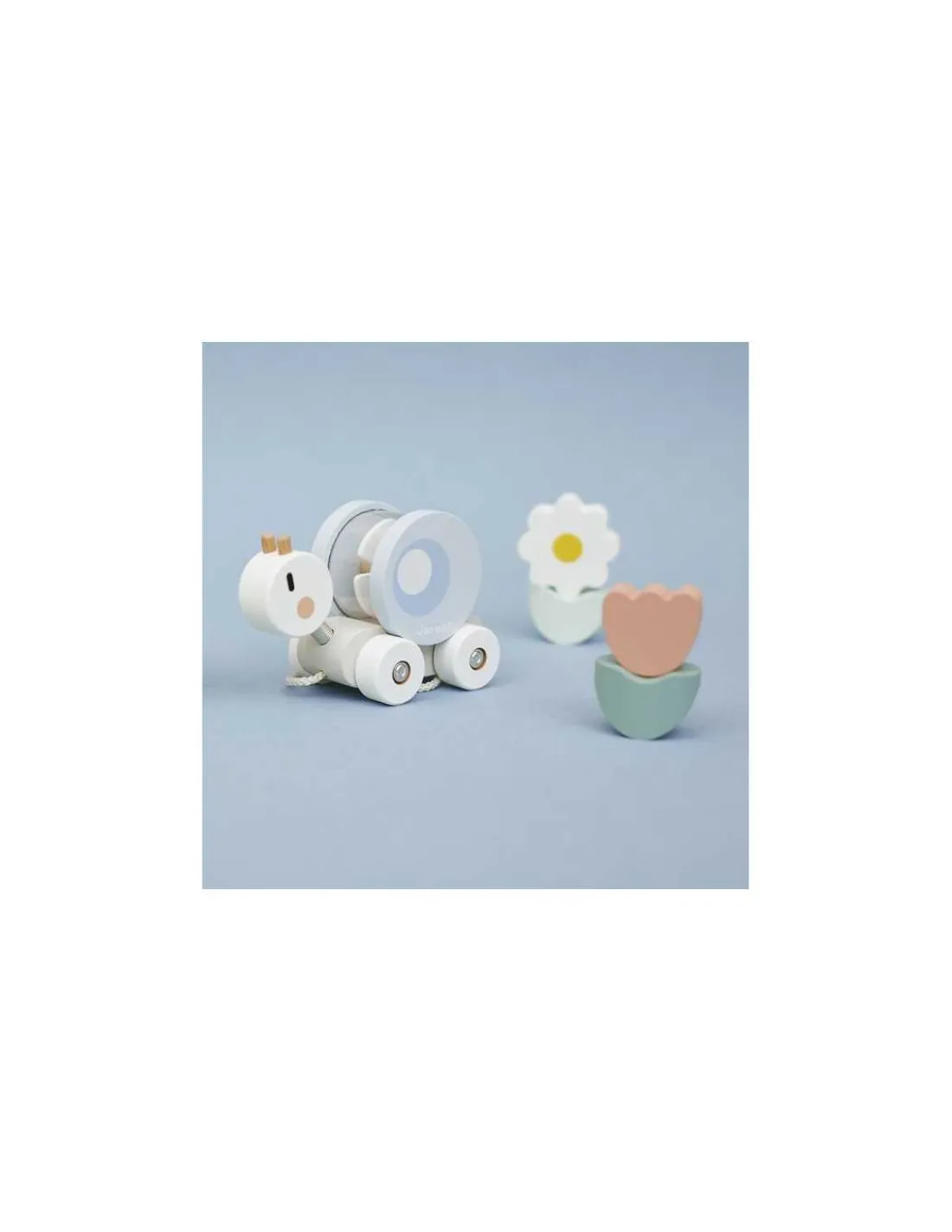 Découvrez le train Escargot de la collection Sweet Cocoon de Janod, un jouet en bois 2 en 1 comprenant un jouet à tirer et un jeu à encastrer pour amuser les bébés dès 12 mois.