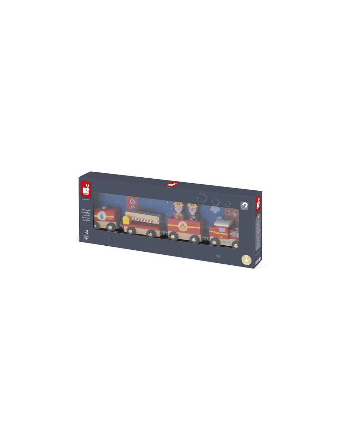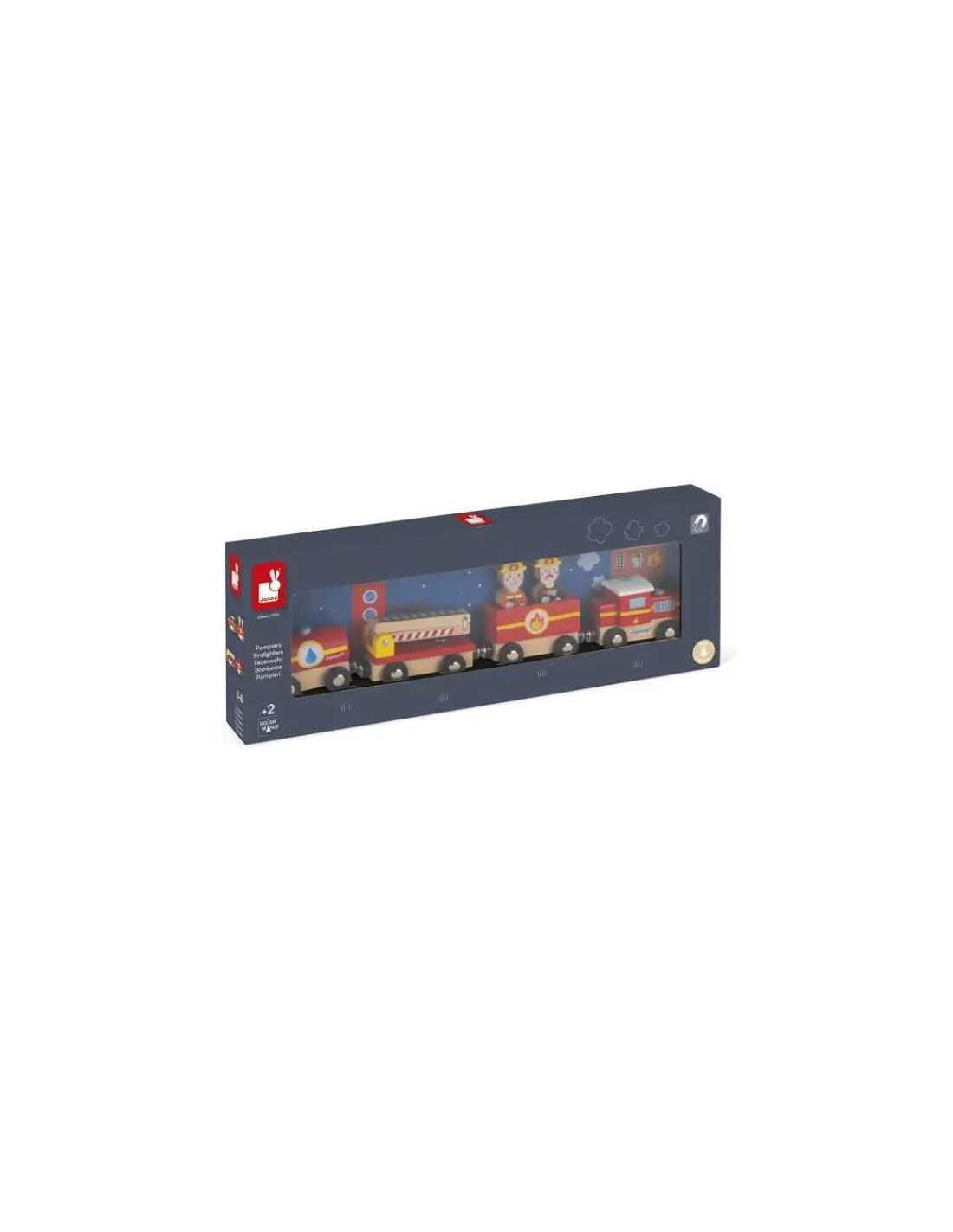 Découvrez le train pompiers Story de Janod, un très joli train en bois magnétique sur le thème des pompiers qui se compose de 6 pièces : une locomotive, 3 wagons dont un avec une échelle et deux pompiers. Un cadeau parfait pour les enfants dès 2 ans.